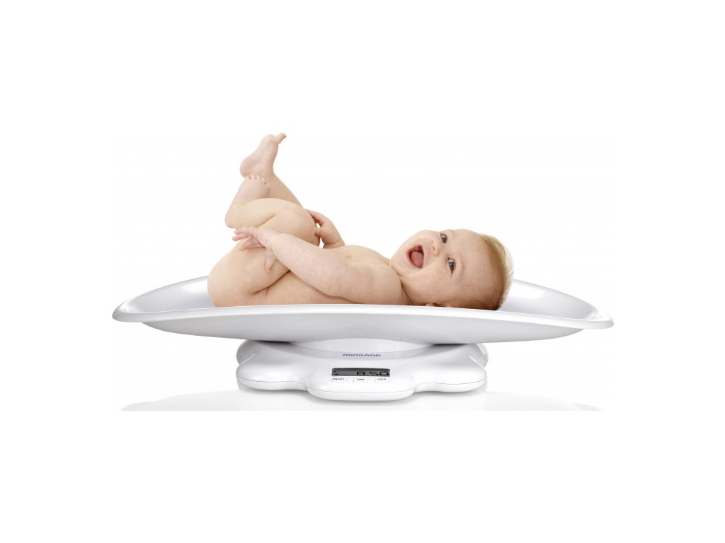 Váha udává hmotnost s přesností na 10g a je proto ideální i pro přesné vážení váhových přírůstků miminka od narození.