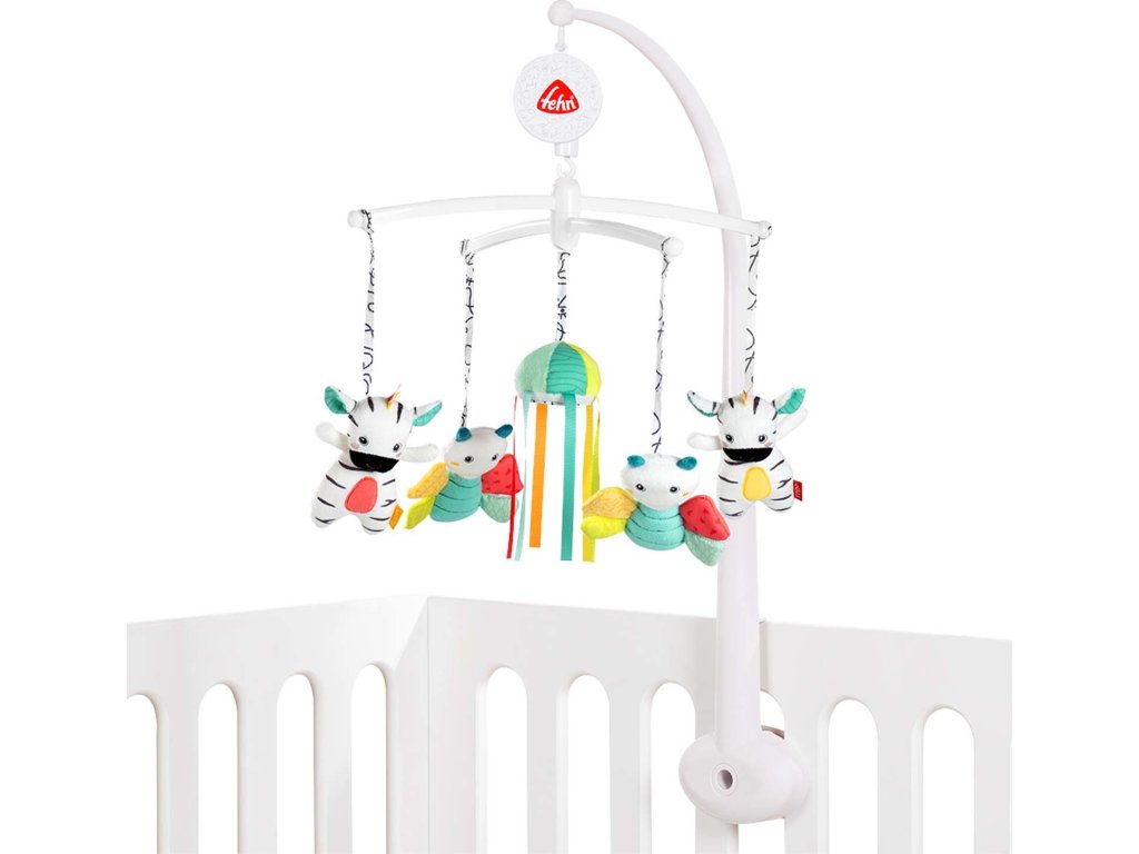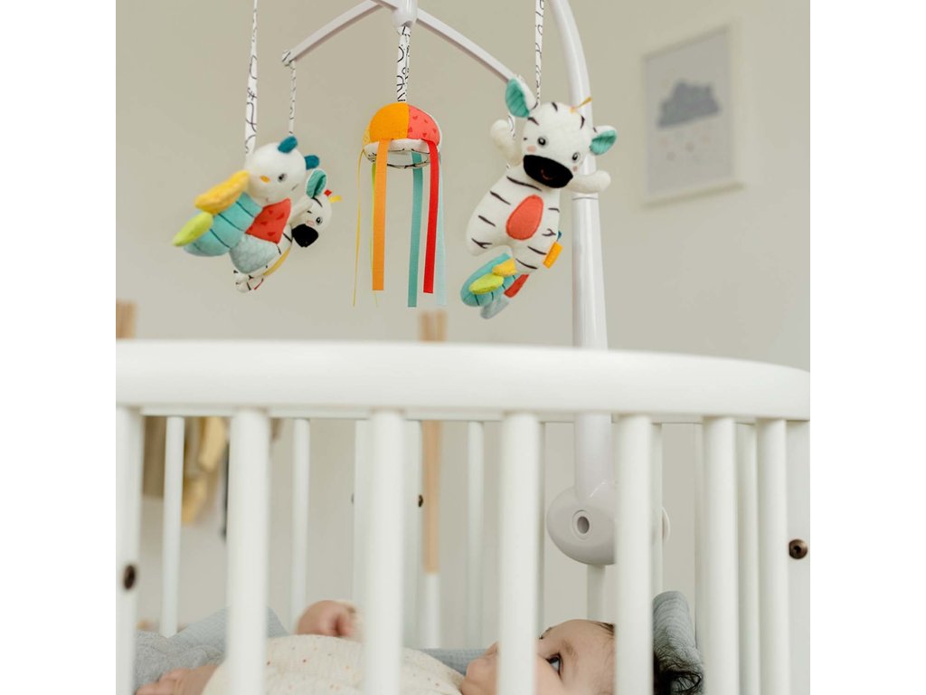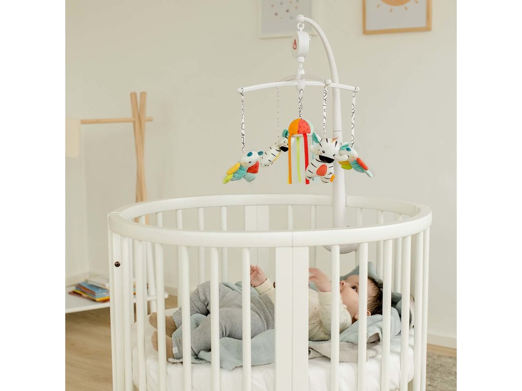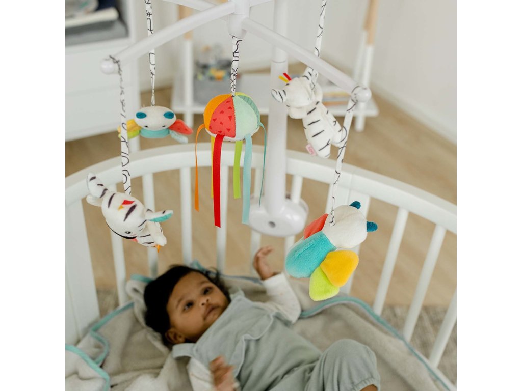 Design kolotoče usnadňuje připevnění k dětské postýlce – figurky lze snadno vyjmout pro hraní a mytí.