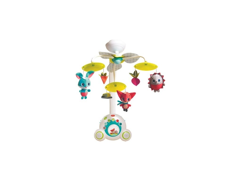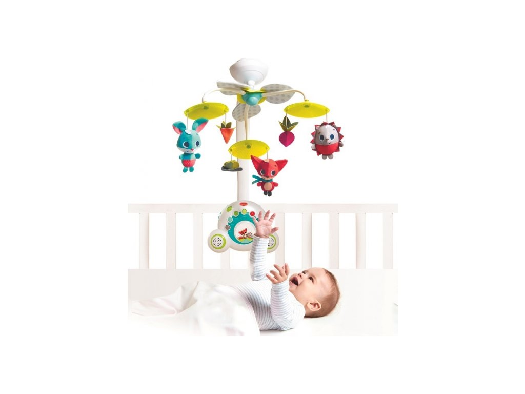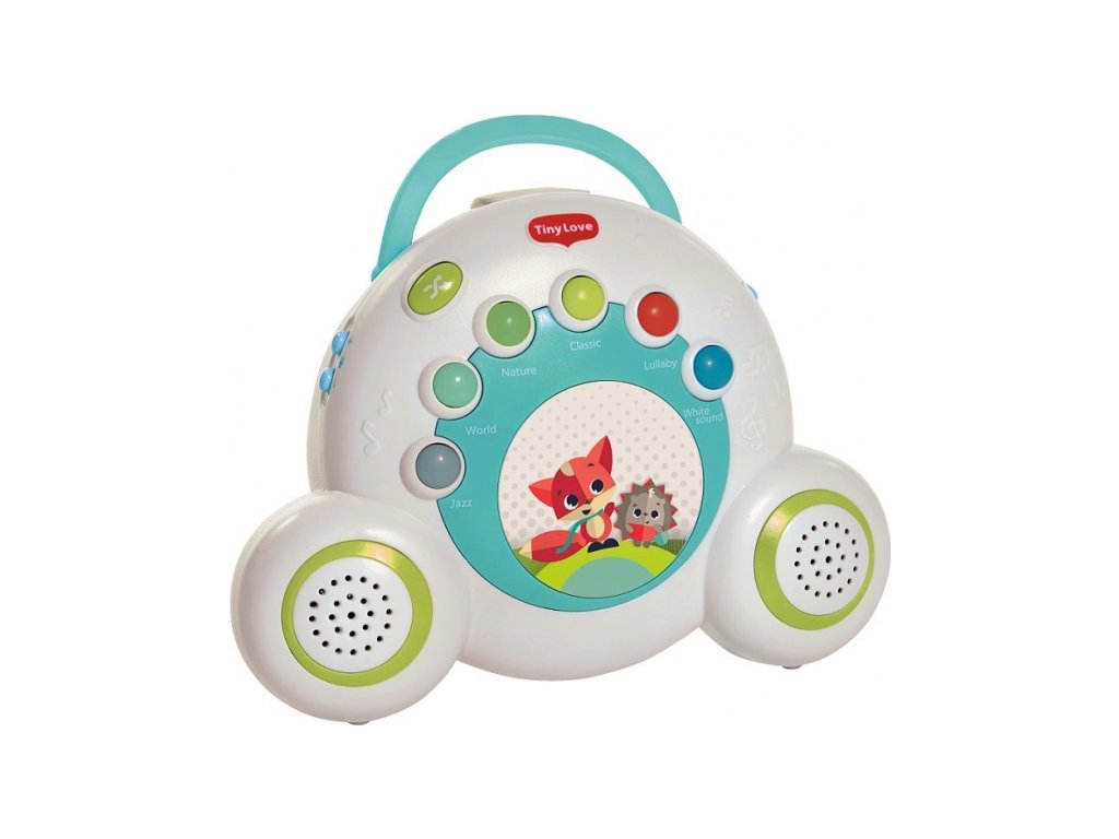 Hudební kolotoč Tiny Love s odnímatelným hudebním přehrávačem pro utišení i zabavení vašeho dítěte v postýlce. Hudební box se dvěma kvalitními reproduktory a nočním světýlkem nabízí 18 různých melodií v 6 různých kategoriích a celkové délce 40 minut. Možnost nastavení hlasitosti hudby. Zavěšené otáčející se postavičky zvířátek upoutají pozornost dítěte v postýlce.
