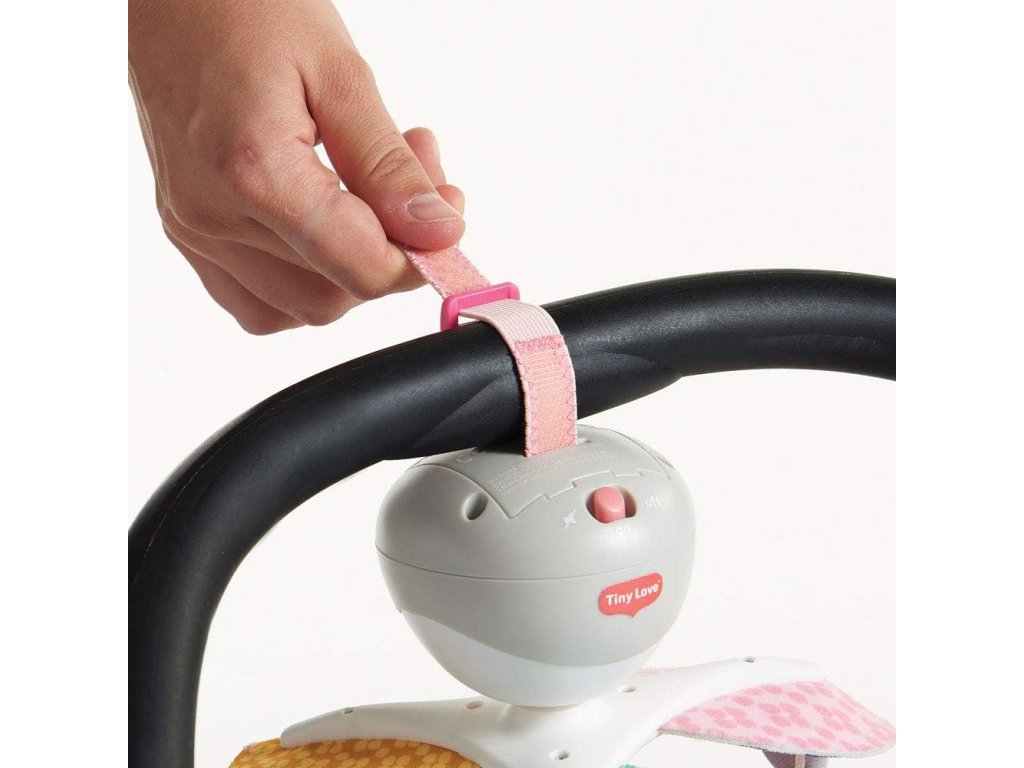 Hudební kolotoč Tiny Love pro malou princeznu hraje až 30 minut 5 různých melodií. Pozornost dítěte upoutají i otáčející se veselé postavičky. Kolotoč nabízí tři různé způsoby uchycení: univerzální úchyt je vhodný např. na cestovní postýlku, klip je ideální na uchycení na kočárek, pásek se suchým zipem umožňuje uchycení na autosedačku. Kolotoč tak vaše dítě zabaví kdekoli na cestách.