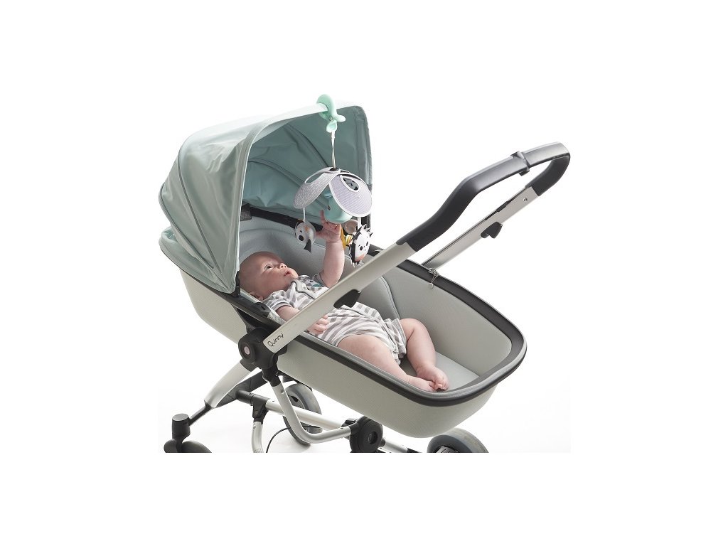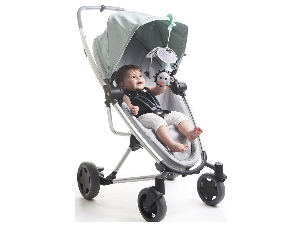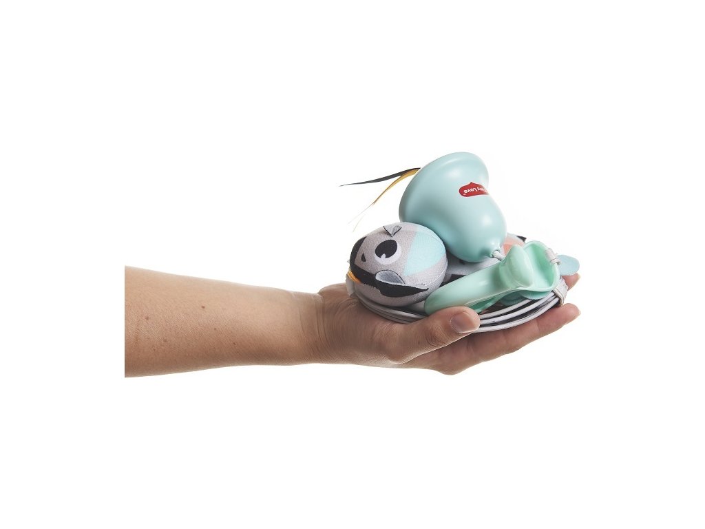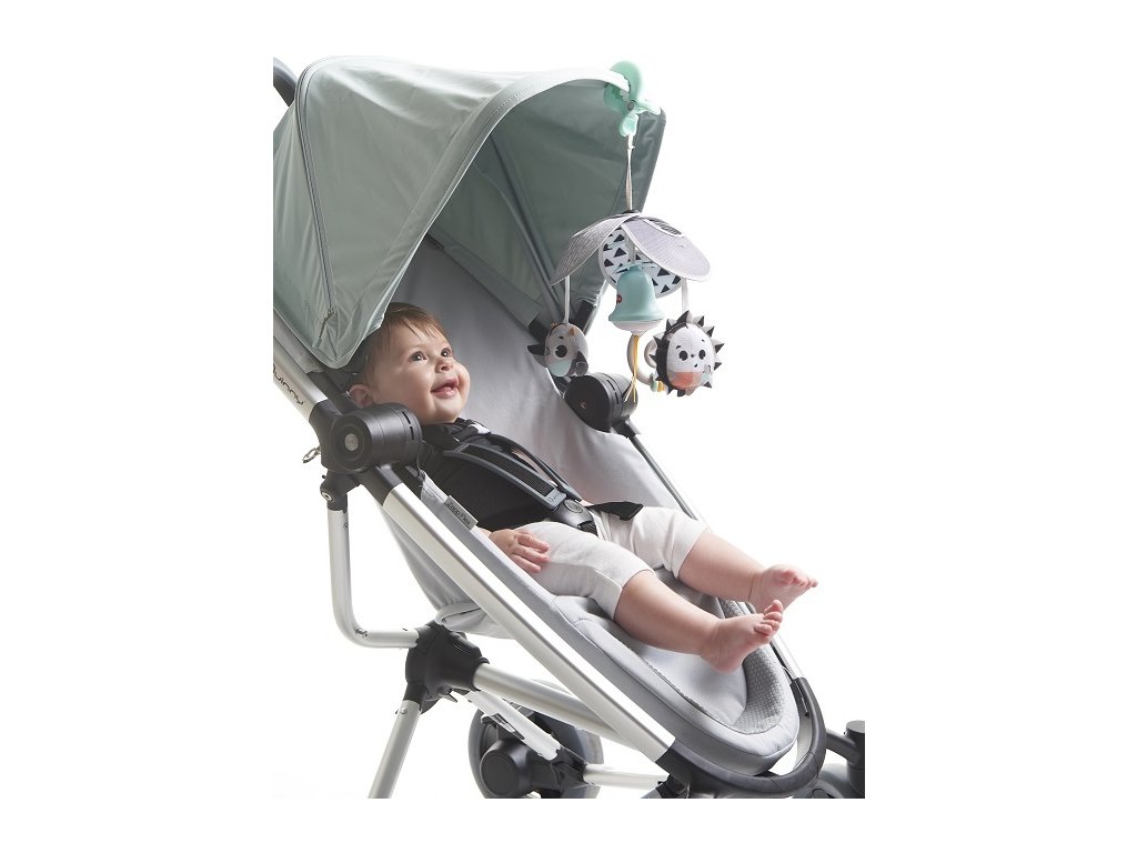 Závěsná hračka Tiny Love zajistí zábavu pro vaše dítě na cestách. Díky plastovému klipu ji lze libovolně zavěsit na autosedačku, kočárek apod. Zvoneček při pohybu jemně cinká. Zavěšené hračky chrastí a šustí. Bezpečné zrcátko, výrazné barvy a různorodé tvary a textury udrží pozornost dítěte.