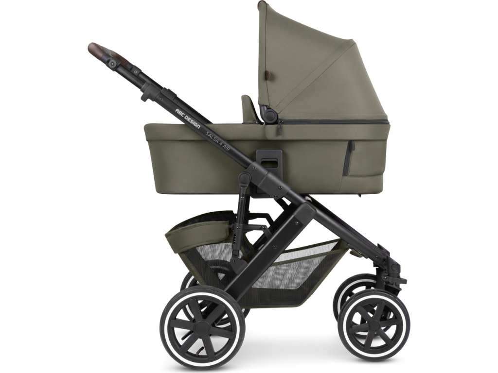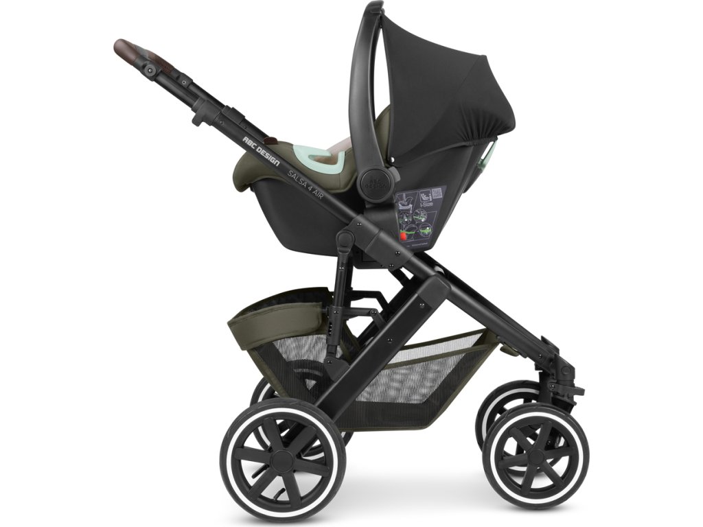 Kočárek Salsa 4 Air je spolehlivým společníkem na jakémkoli povrchu. Vysoce kvalitní kuličková ložiska, integrované odpružení a velká pneumatická kola nabízejí maximální pohodlí a zajišťují super hladkou jízdu i na těch nejhrbolatějších cestách. Díky otočným předním kolům je kočárek dobře ovladatelný ve městě. Rukojeť lze snadno nastavit podle potřeb rodičů. K dispozici je adaptér jako volitelné příslušenství. Ke kočárku tak snadno připevníte svou dětskou autosedačku. S univerzálním fixním držákem ABC Design připevníte na kočárek tašku na pleny, držák nápojů čisvětlo jediným kliknutím (k dokoupení samostatně).