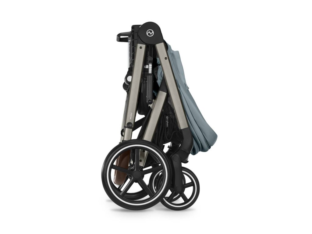Model Cybex Balios S Lux lze jednou rukou snadno složit do volně stojícího balíčku pro pohodlné ukládání a skladování.