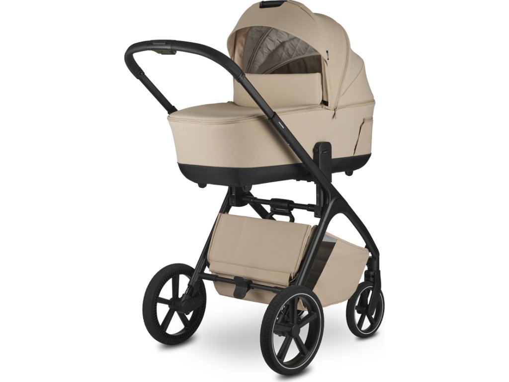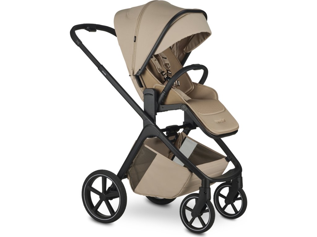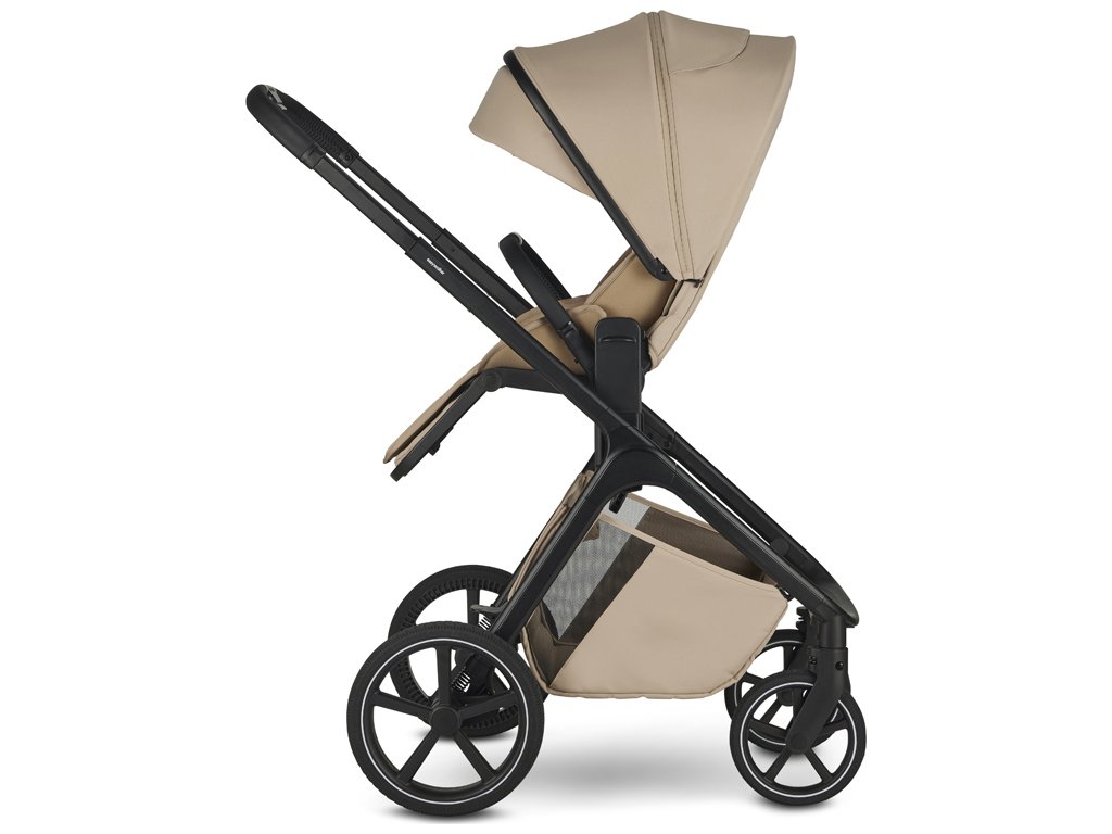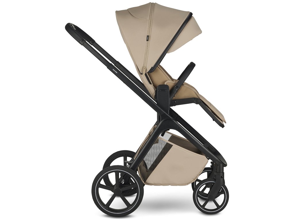 - Nastavitelná výška sedáku díky integrovanému výškovému adaptéru, možnost nastavení výšky na třech úrovních a korby na kočárku