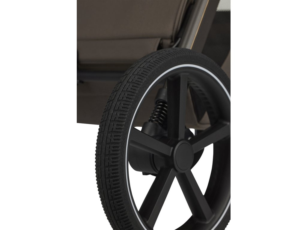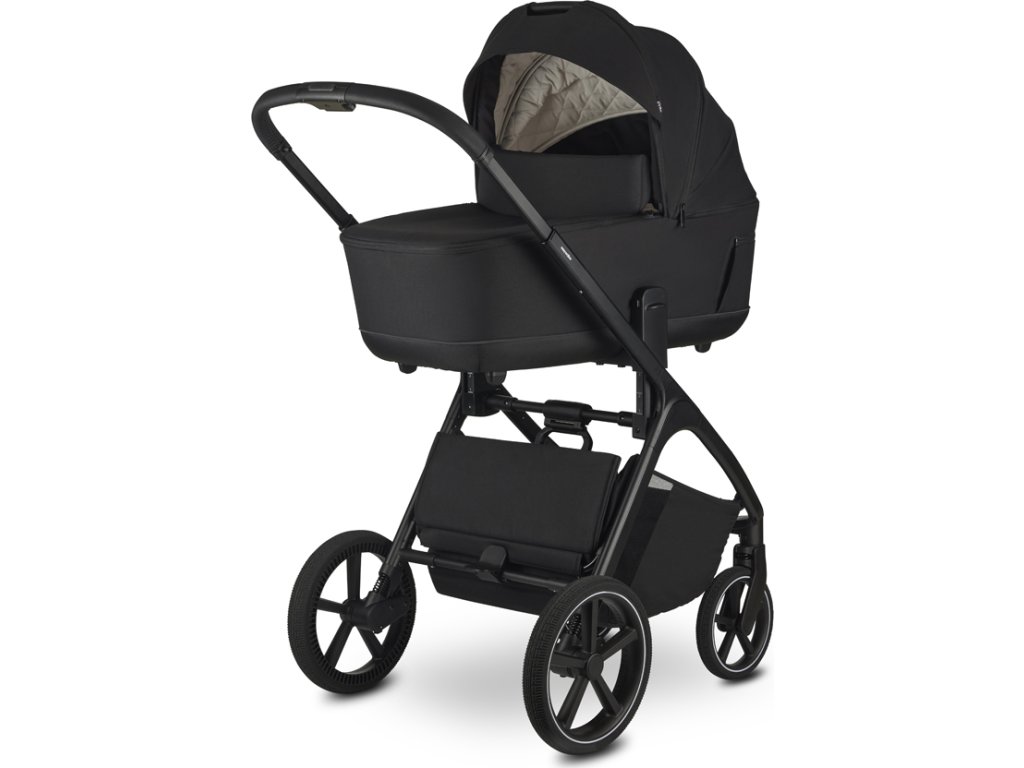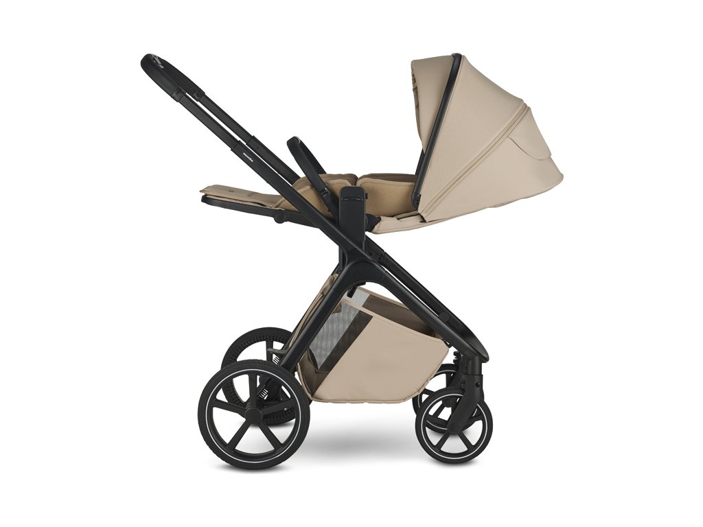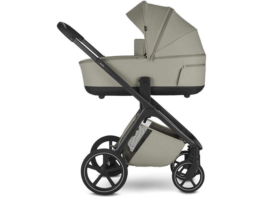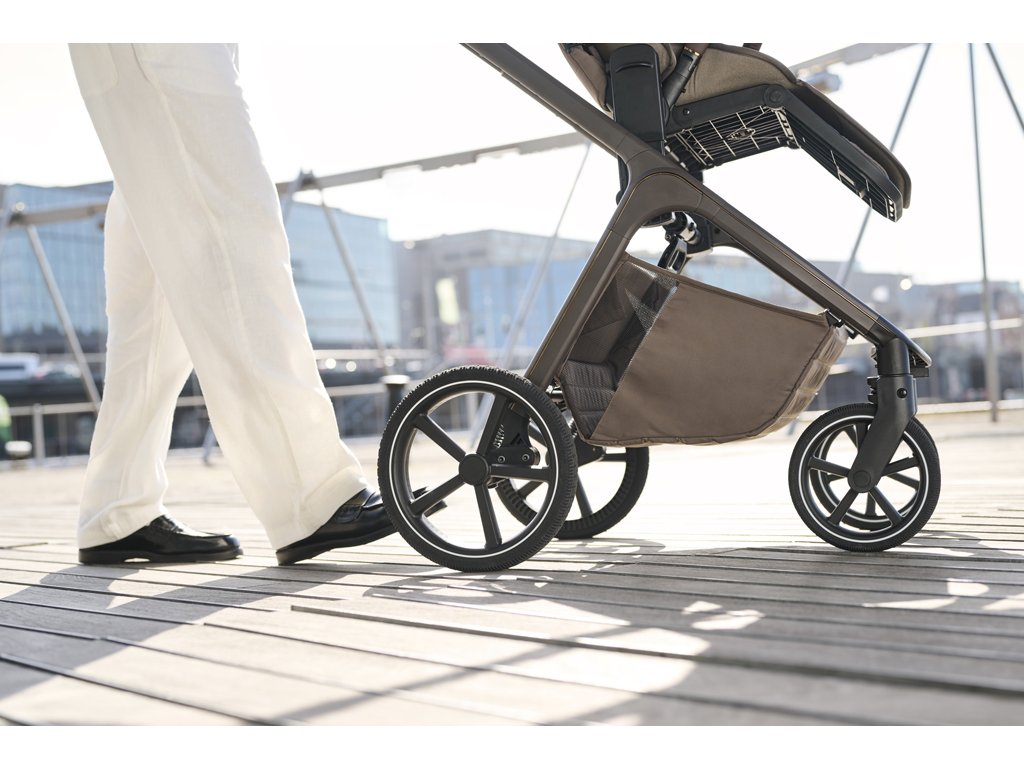 - Nastavitelná výška sedáku díky integrovanému výškovému adaptéru, možnost nastavení výšky na třech úrovních a korby na kočárku
