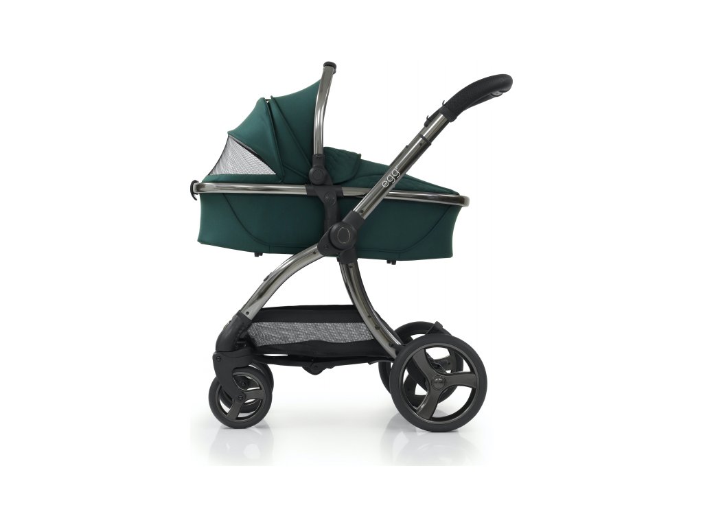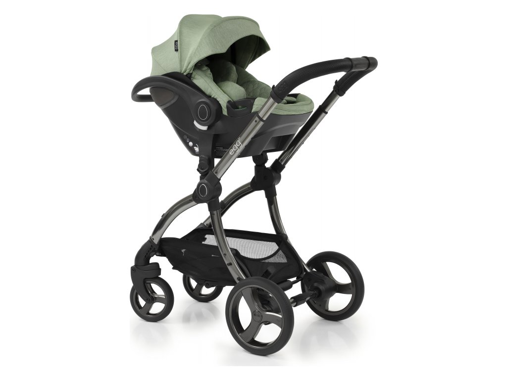 - hluboký díl egg2® se změnil co do svého tvaru a délky (vnitřní rozměry: 80 x 35 x 17 cm), tak i v mechanismu uvolnění z podvozku kočárku: prostřednictvím madla v zadní části dílu u hlavičky dítěte. Také stříška hluboké korby zahrnuje odvětrávací panel se síťkou;