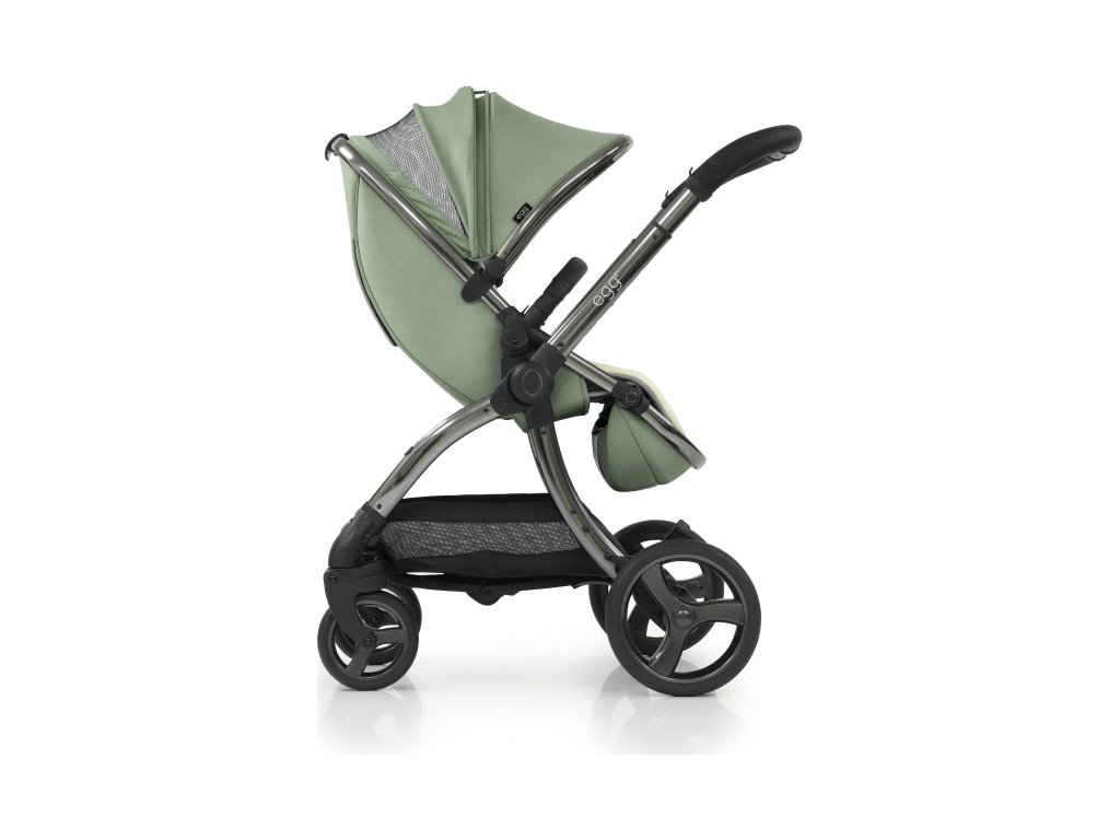 - nová, prostornější sedací část kočárku egg2® je o 7 cm vyšší (délka zádové opěrky je 59 cm) a na podvozku je posazena o 3,6 cm výše, lze ji sklopit do 3 poloh a klasicky nabízí 2 pozice umístění na podvozku – směrem k rodiči nebo čelem do okolí;