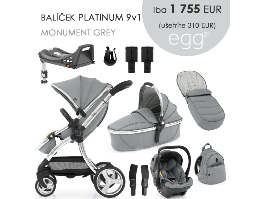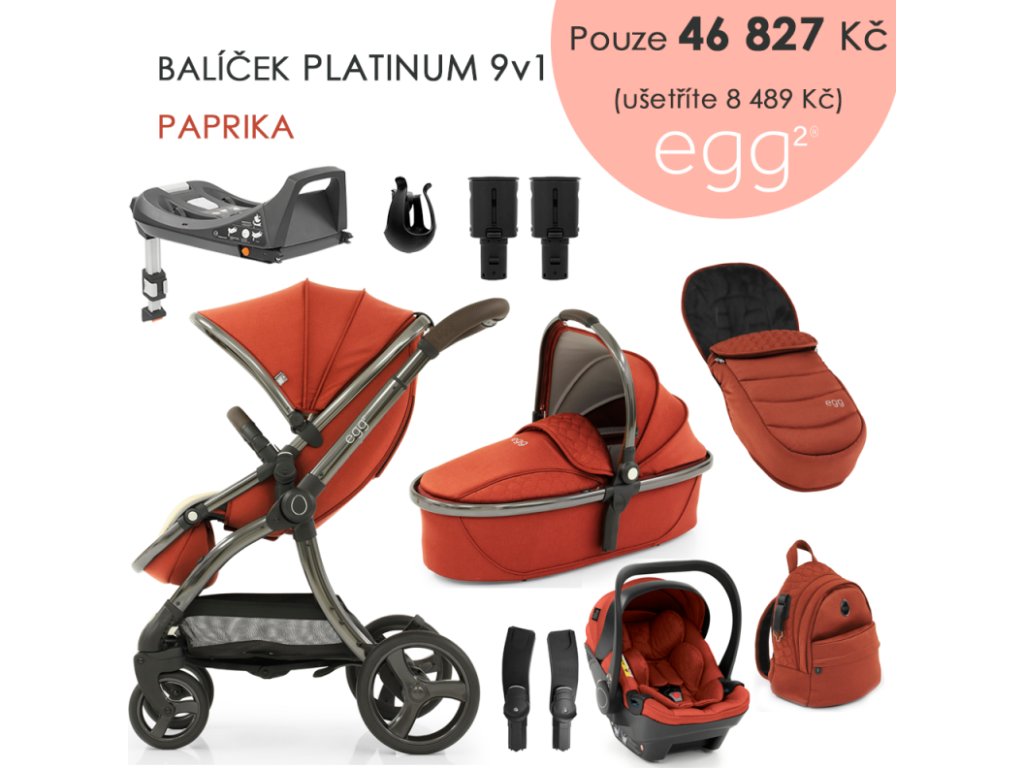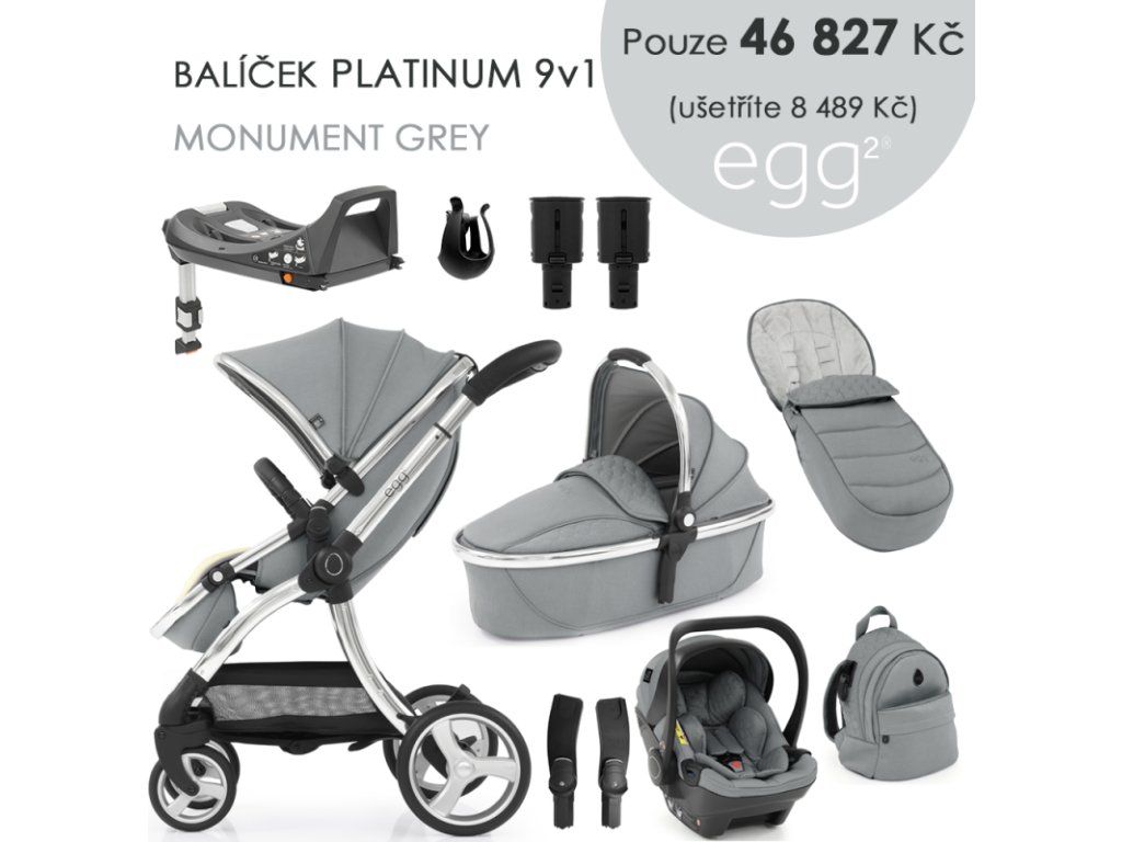 - elegantní sportovní kočárek BabyStyle Egg 2 v cenově zvýhodněném setu 9v1