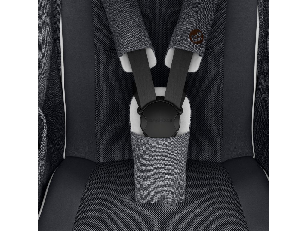 - 5-ti bodový bezpečností pás s polstrovanými chrániči a magnetickým uzávěrem umožňuje rychlé a bezpečné připoutání dítěte