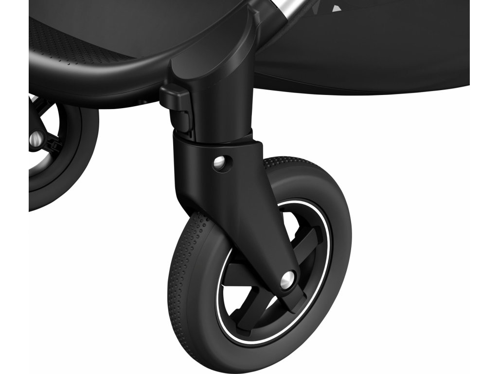 - Přední kola kočárku jsou otočná o 360° a lze je snadno zaaretovat pro plynulou jízdu