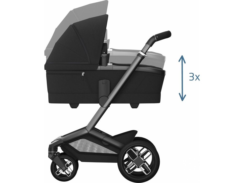 Nastavitelná korbička, navržená pro rodiče všech výšek, zajišťuje, že vás nikdy nebudou bolet záda při vkládání a vyjímání dítěte.