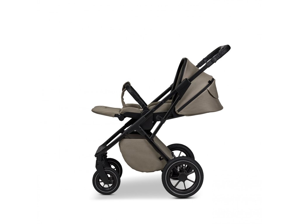 Vhodný od narození do 3 let, komfortní a lehká hluboká vana s rozepínatelnou stříškou s ventilační síťkou, hluboká vana s ventilačním odepínacím okénkem, paměťové adaptéry pro snadné vyjmutí hluboké vany, prostorný sportovní sedák s rozepínatelnou stříškou a krytou ventilační síťkou, výškově nastavitelná zádová opěrka u sportovního sedáku s odvětráváním, polohovatelná opěrka zad a nohou až do úplného lehu, paměťové adaptéry u sportovního sedáku, opěrka nohou u sportovního sedáku nemá hranu, odnímatelné madlo před dítě s koženkovým potahem, výškově nastavitelná kloubová rukojeť, stříška hluboké vany a sportovního sedáku s UPF 50+ ochranou, sportovní sedák nastavitelný po i proti směru jízdy, polstrované bezpečnostní pětibodové pásy, přední nafukovací otočná kola s možností aretace, nafukovací zadní kola, prostorný úložný košík.