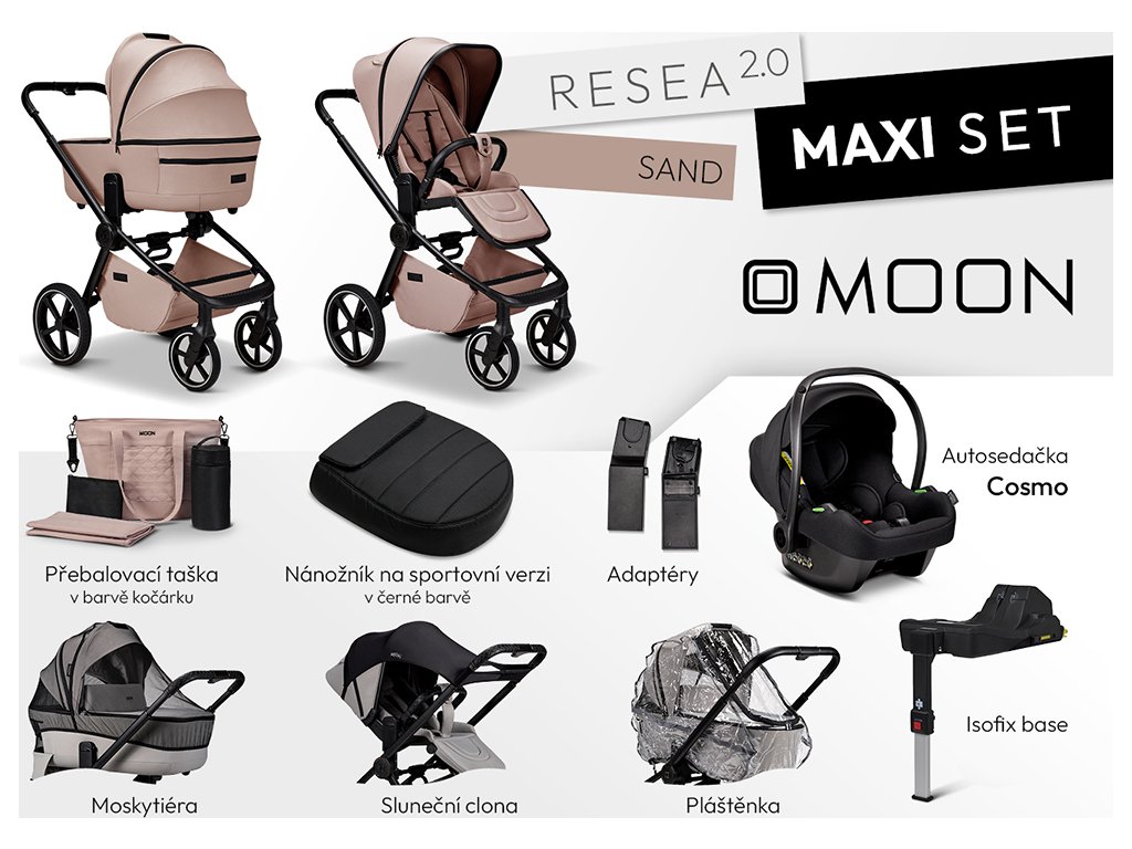 Pro rodiče, kteří chtějí mít vše potřebné pohromadě, je k dispozici MAXI SET, který kromě samotného kočárku obsahuje také: