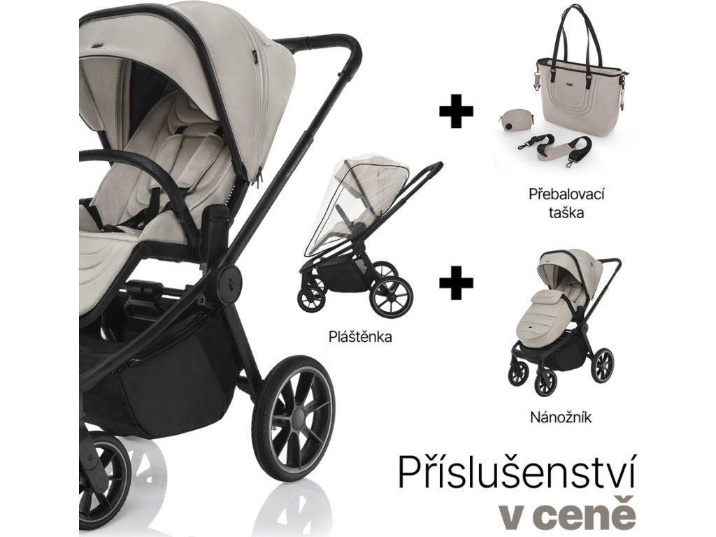 Praktickými detaily jsou magnetická spona pásu, uzavíratelný košík, odklápěcí hrazda a madlo pro snadné přenášení složeného kočárku. Kočárek se snadno skládá a přenáší, a to i jednou rukou. Ve výbavě nechybí pláštěnka, nánožník a stylová přebalovací taška.