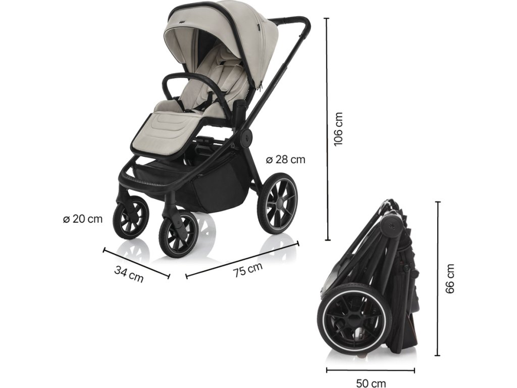 • Rozměry složeného kočárku (š × v): 50 × 66 cm