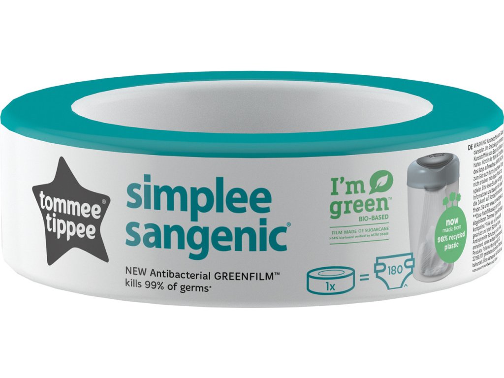 Náhradní kazety s antibakteriální fólií do koše Tommee Tippee Sangenic Simplee nabízí jednoduchý způsob, jak udržet v dětském pokoji čistotu bez zápachu. Antibakteriální složka fólie zničí 99% baktérií. Kapacita jedné kazety je až 180 plen (vel. 2–5kg).