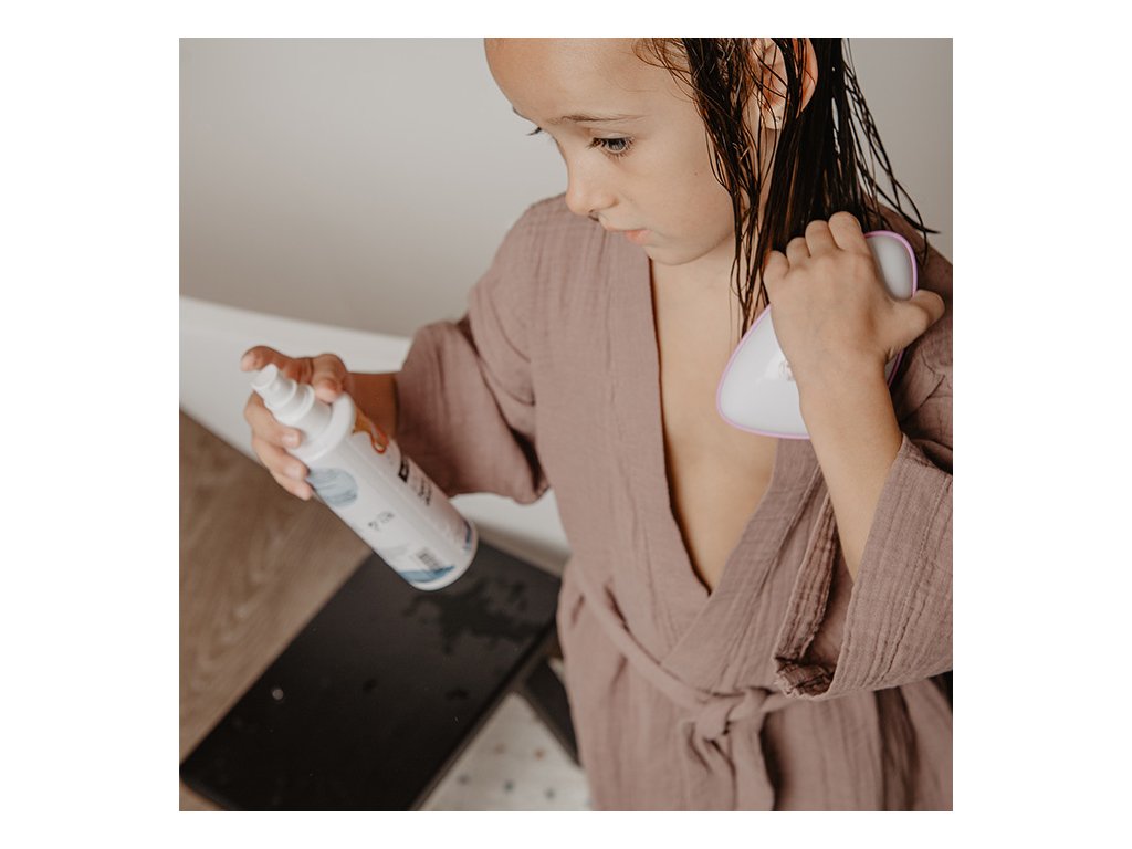 S lehkou texturou zanechává vlasy hedvábné a lesklé, aniž by je zatěžoval. Je speciálně vyvinutý pro děti od 3 let. Složení je obohaceno o organický fermentovaný ovesný extrakt. Účinně rozčesává mokré i suché vlasy. Poradí si s dlouhými i kudrnatými vlasy.