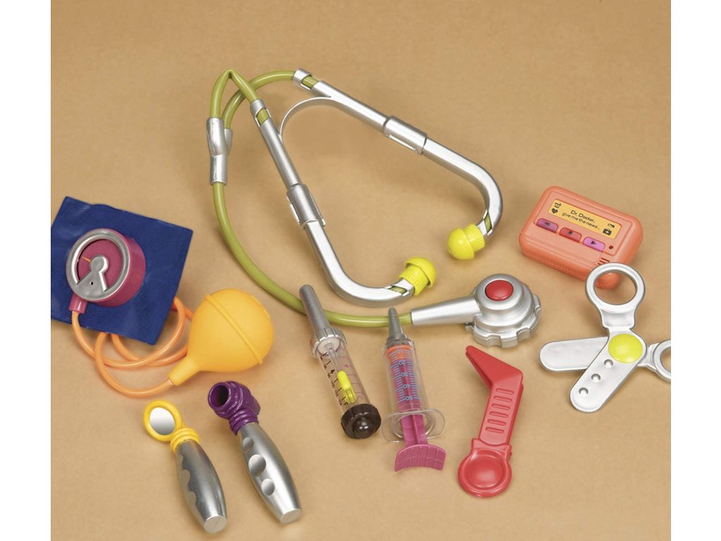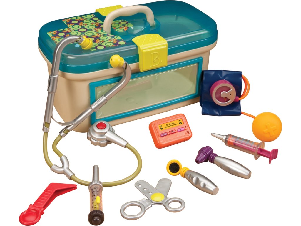 Oblíbená hra na doktora může začít! Vše, co malý lékař nebo lékařka potřebují, najdou v pevném kufříku Btoys s uchem na přenášení. Kufřík obsahuje otoskop, teploměr, stetoskop se zvukem tlukotu srdce, tlakoměr,pinzetu, zrcátko, stříkačku, bezpečné nůžky a pípátko.