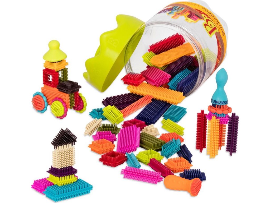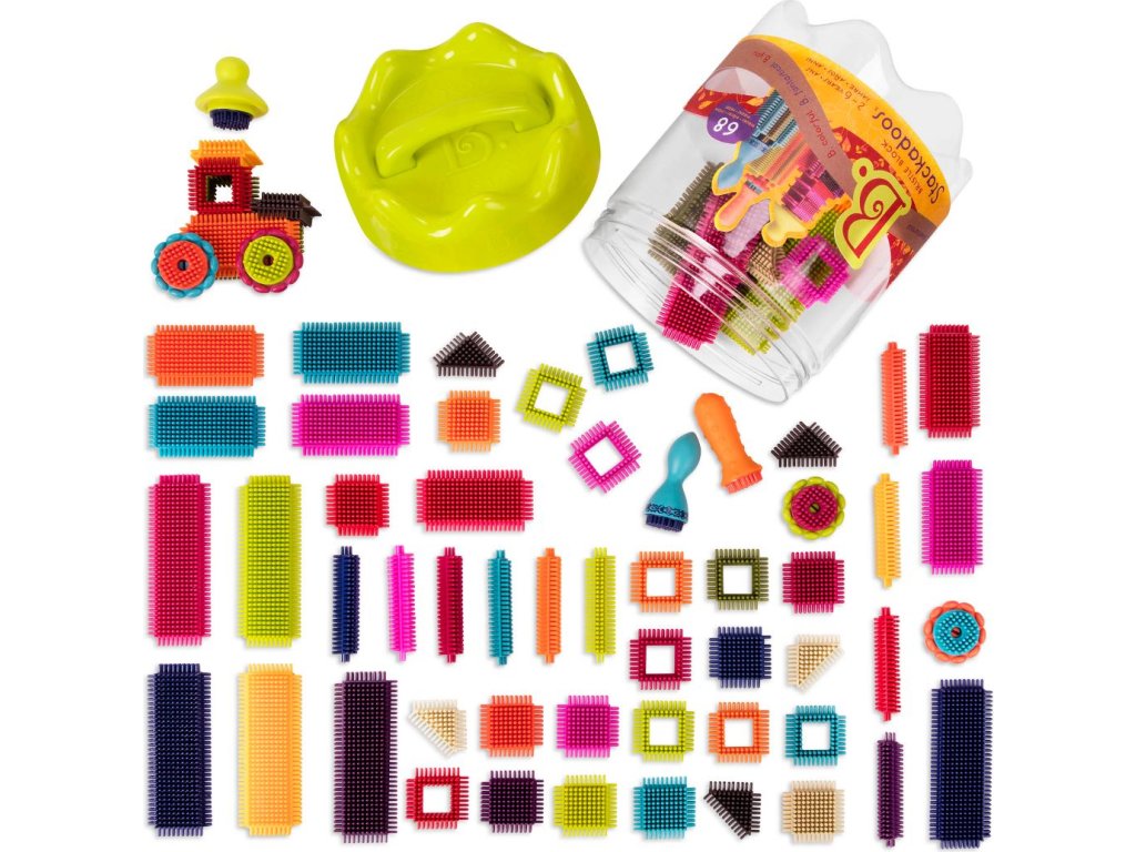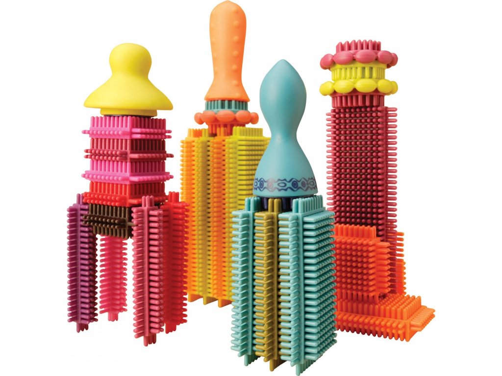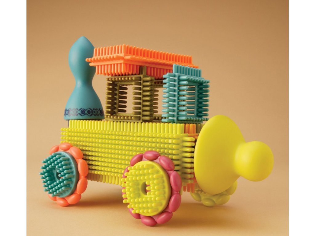 Unikátní „ježatá“ stavebnice s různobarevnými díly umožňuje různorodé stavění od robota, auta až po celé město. 68 kusů z příjemného měkkého materiálu nabízí nekonečně mnoho kombinací. Jednotlivé díly se snadno spojují.