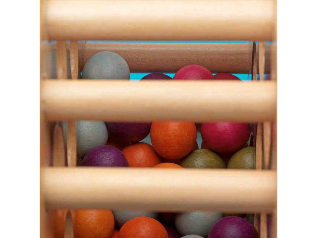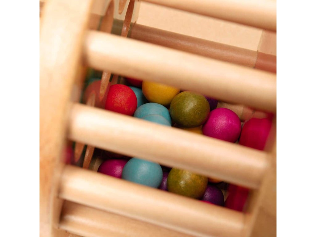 Dřevěný válec se 42 barevnými dřevěnými kuličkami při otáčení vytváří příjemný zvuk deště. Hračka v kvalitním dřevěném provedení bude i krásnou dekorací v dětském pokoji.