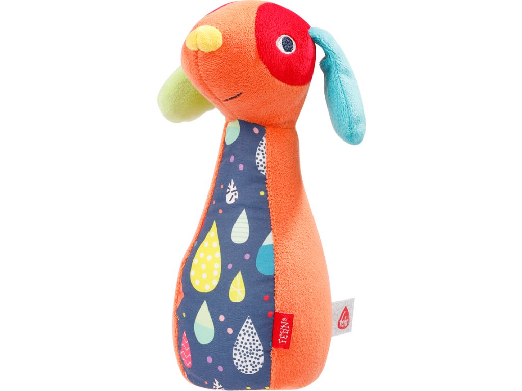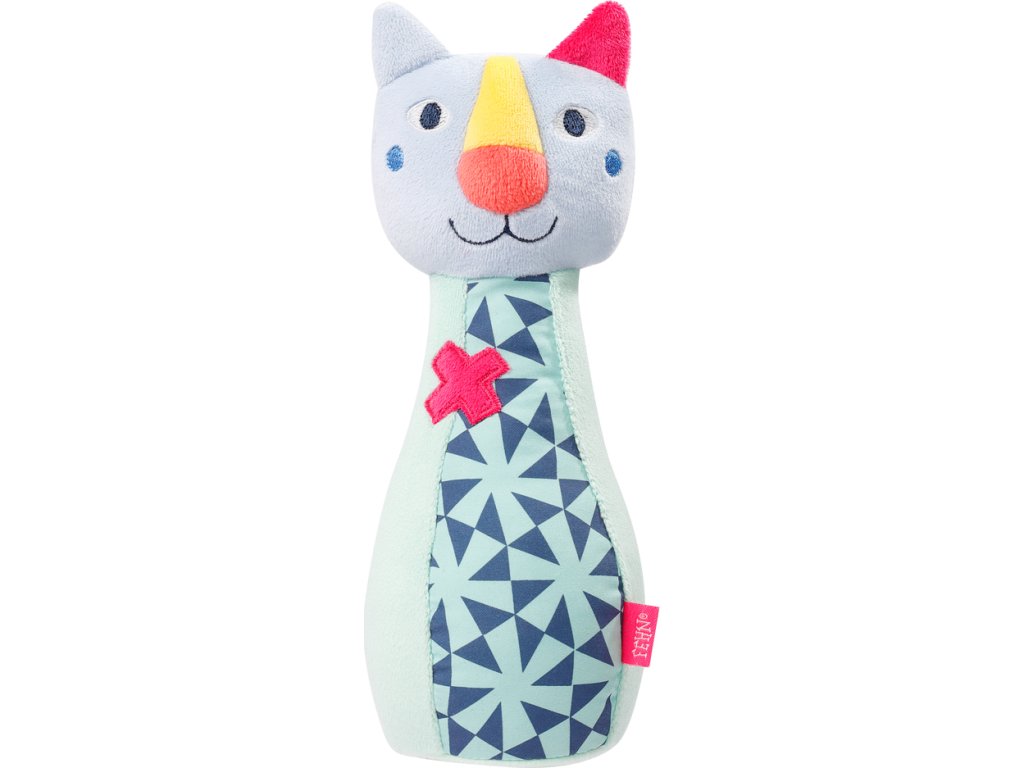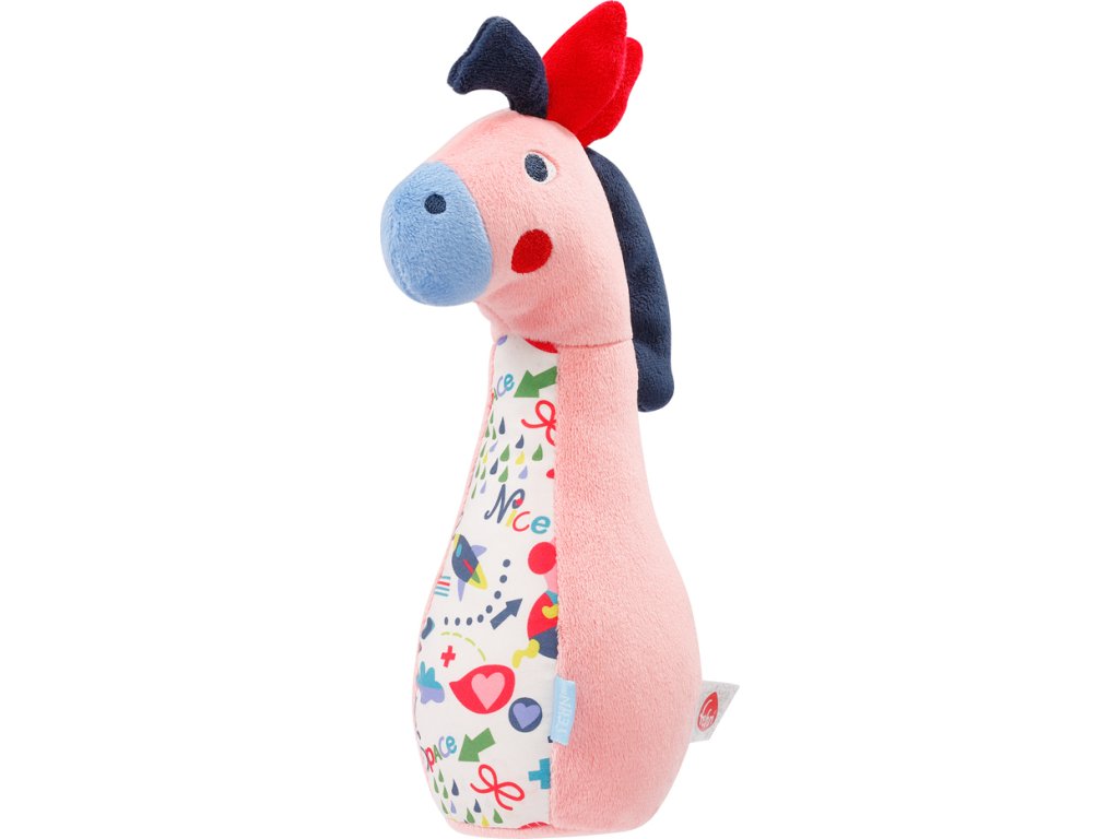 Šest měkkých kuželek spolu s míčem jsou barevné a všechny mají skrytý zvuk: psí kuželka hrká, kočičí kuželka zní, kuželka koně cvrliká a míč při pohybu vydává jemný chrastivý zvuk. To vše u dítěte probouzí objevitelského ducha a podporuje jeho včasný vývoj smyslů.