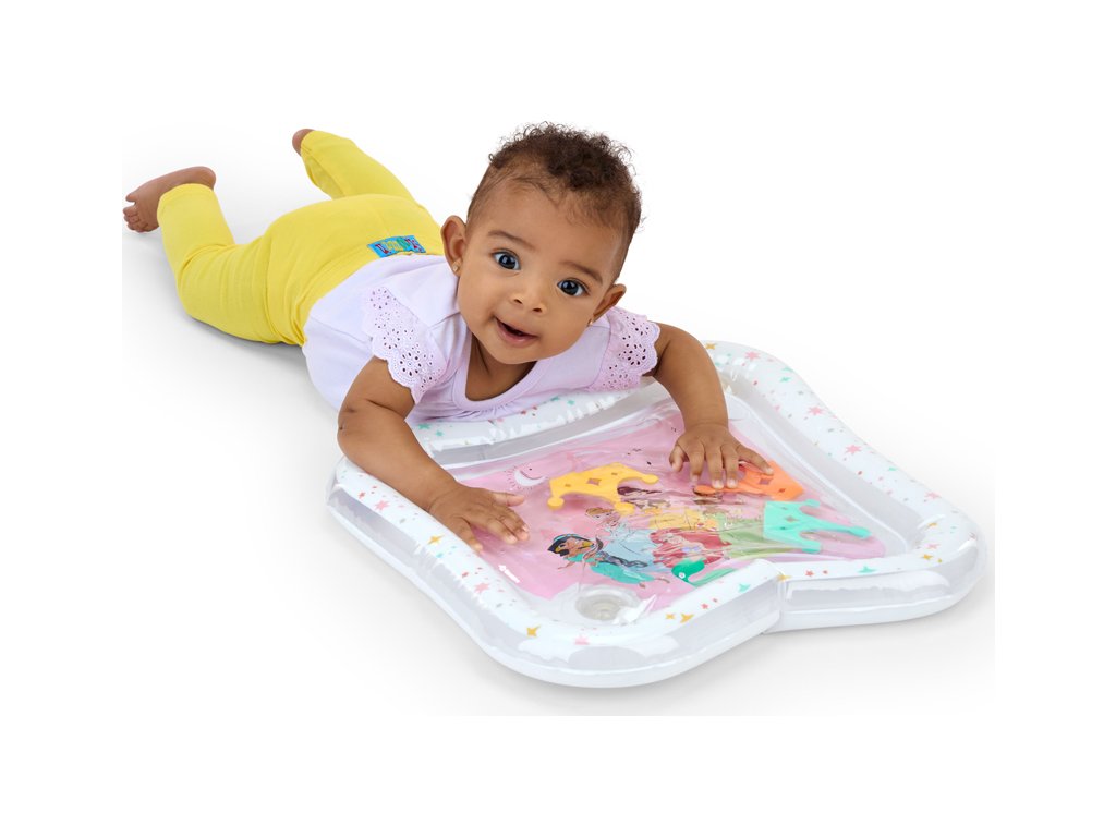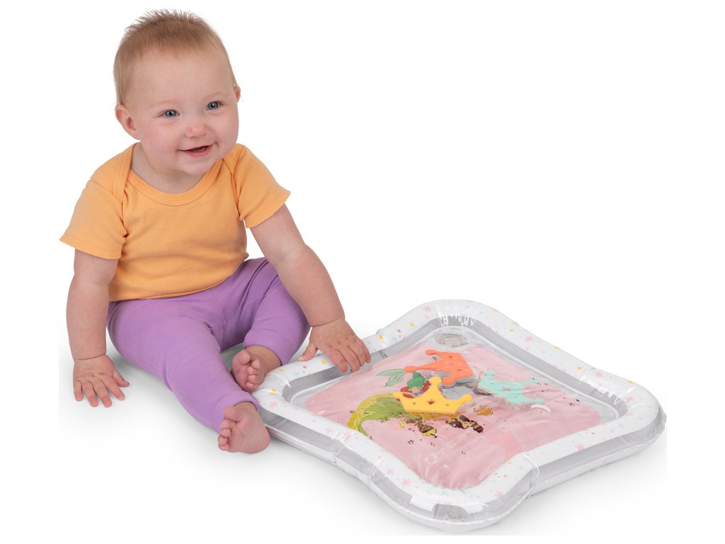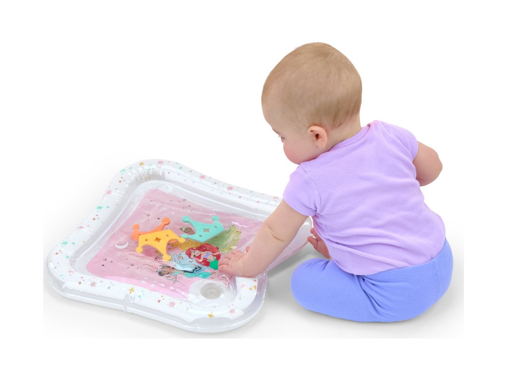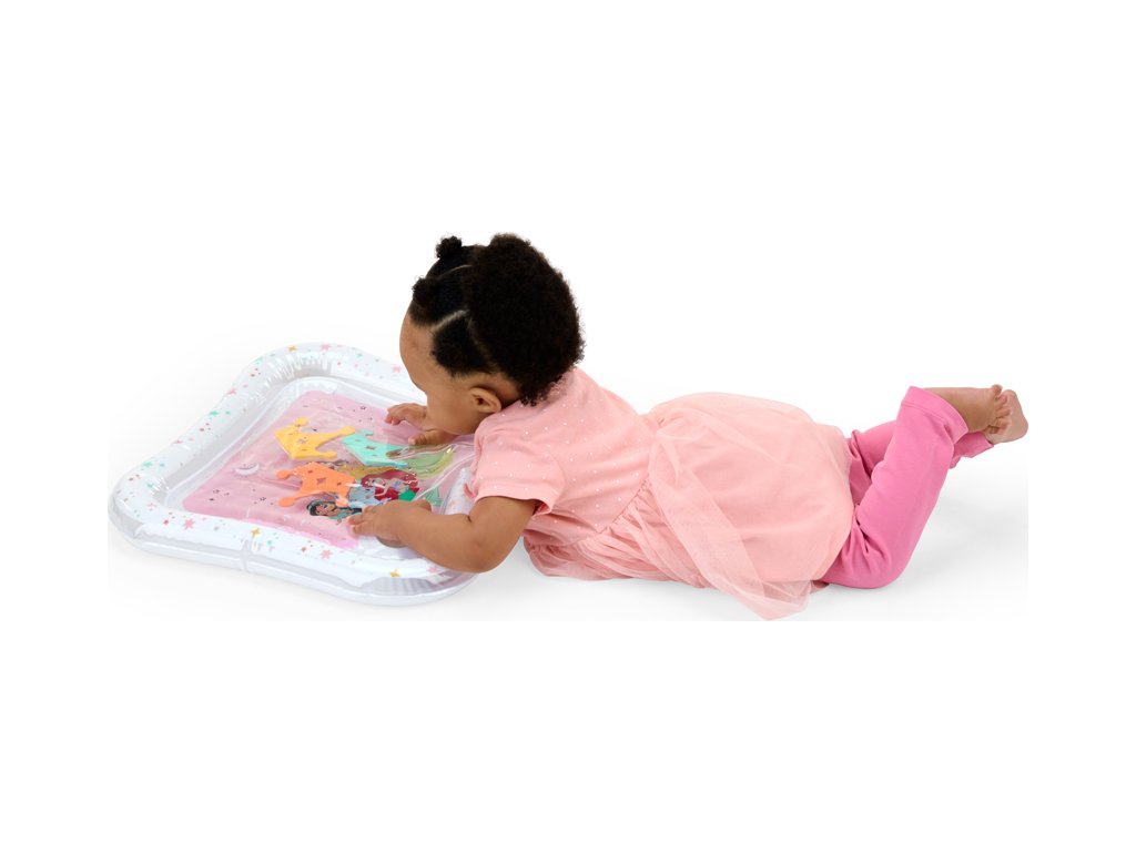 Přivítejte malé princezny do světa zábavy s okouzlující vodní podložkou Disney Princess. Tato hravá a praktická podložka přemění klasickou dobu trénování na bříšku na zábavné a podnětné dobrodružství. Tři plovoucí korunky se vznášejí uvnitř podložky, čímž stimulují zrak, dotek a koordinaci již od nejútlejšího věku. Vodní podložka s Disney princeznami je originální a praktický dárek, který rozzáří oči každé malé princezně – a ušetří rodičům úklid po hraní s vodou!