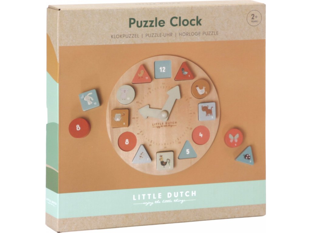 S pomocí puzzle hodin Little Dutch se děti učí rozpoznávat barvy, čísla a tvary.