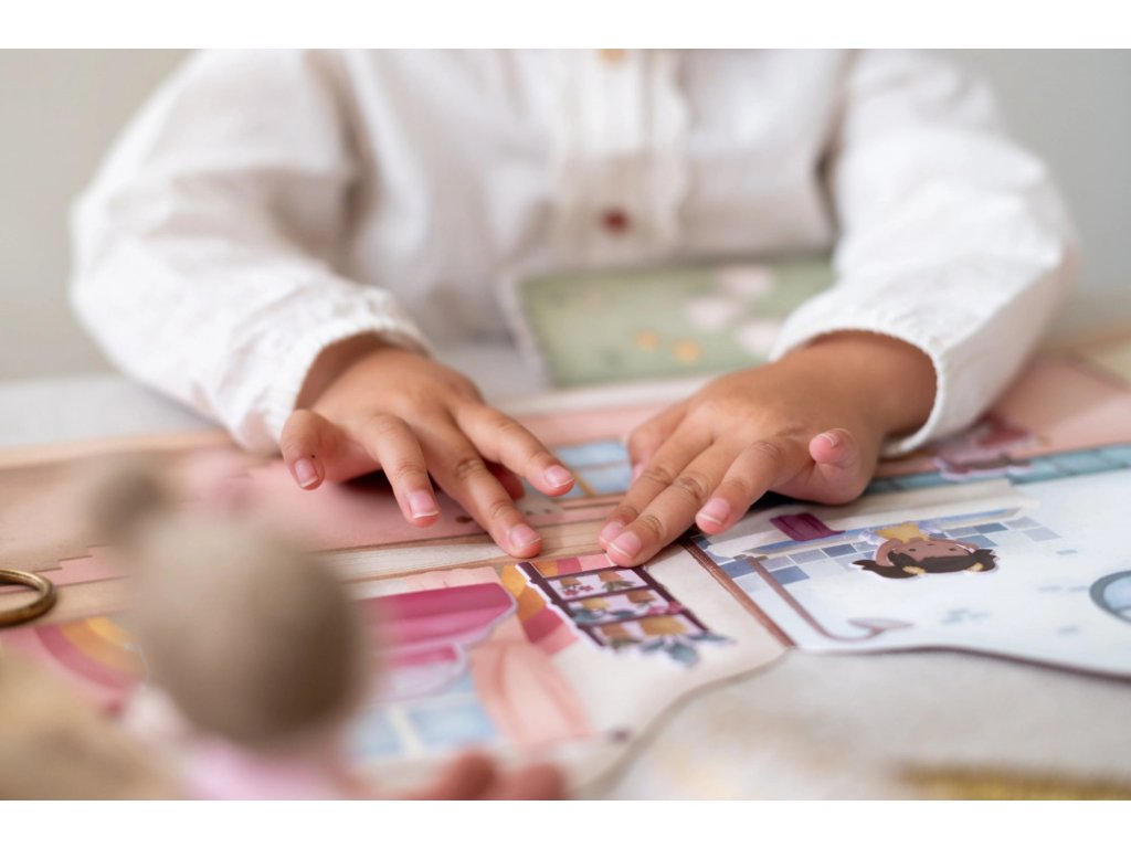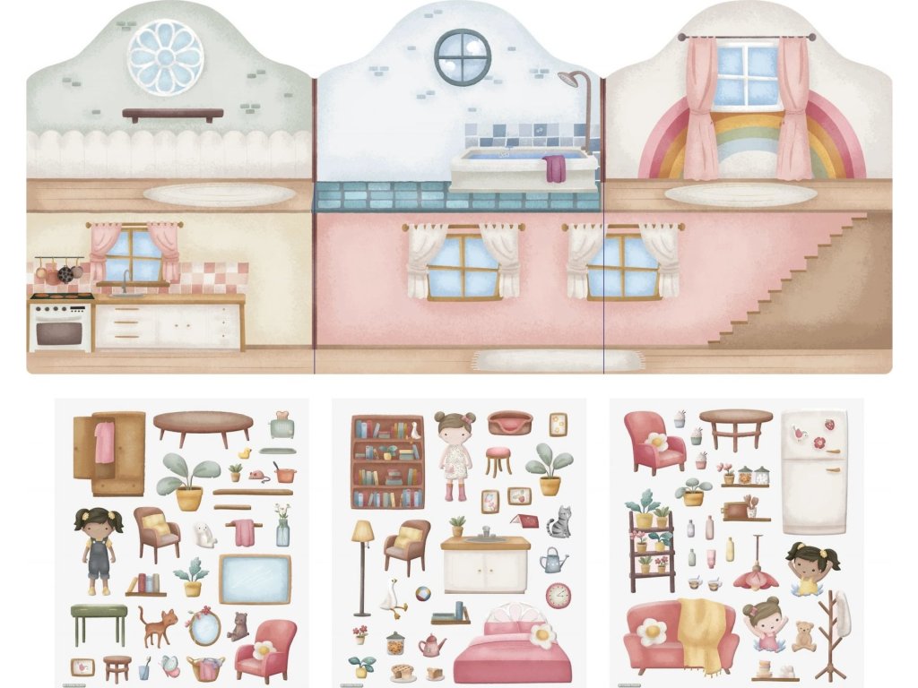 Podpořte dětskou fantazii s touto sadou opakovaně použitelných samolepek Little Dutch. Děti mohou znovu a znovu vyzdobit domeček Rosy více než šedesáti veselými 3D samolepkami a pokaždé vytvořit jiný příběh.