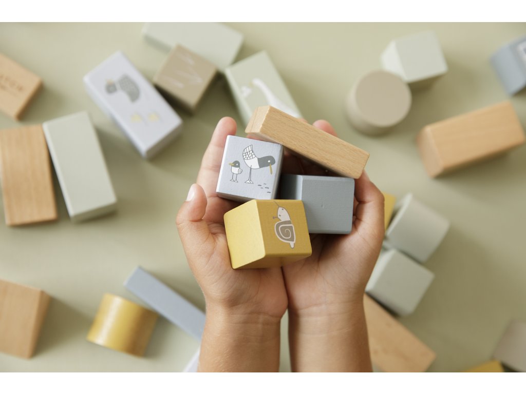 Dřevěné kostky jsou doslova nezbytností do každého dětského pokoje. Tuba obsahuje 50 dřevěných kostek různých barev a tvarů s krásným potiskem. Upusťte uzdu fantazii a vytvářejte spolu s vaším dítětem kreativní stavby. Když hra skončí, jednoduše kostky uložíte zpět do tuby!