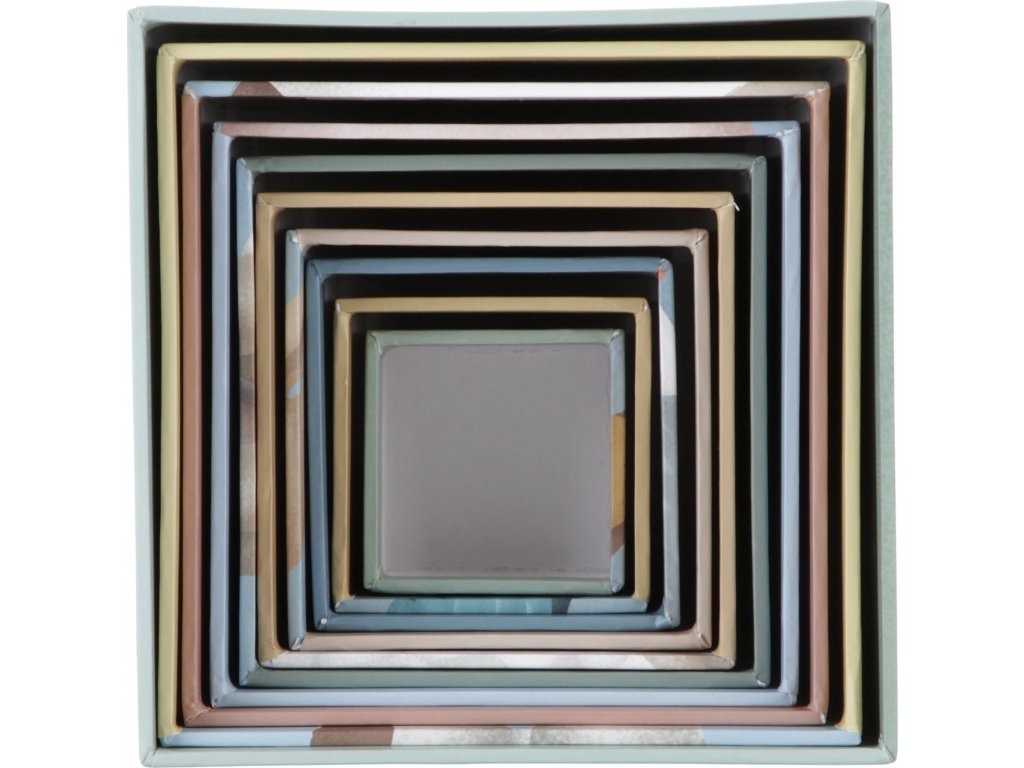 Nejmenší kostka má 5 cm a největší má 14 cm. Po skončení hraní kostky snadno uložíte složením do sebe.