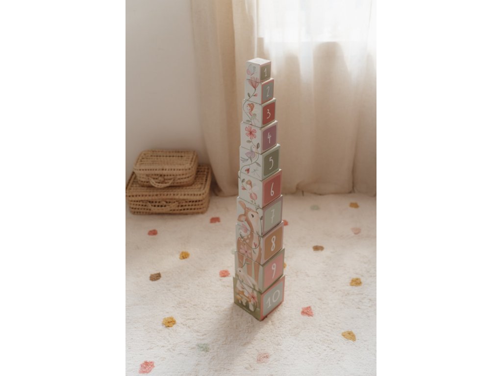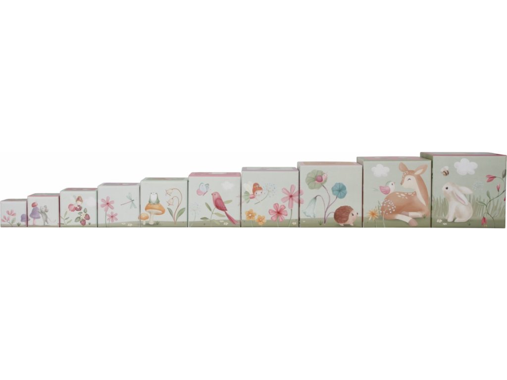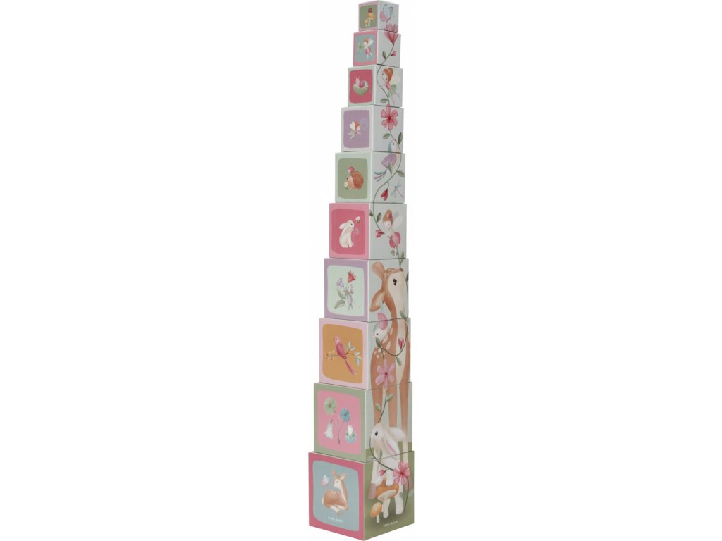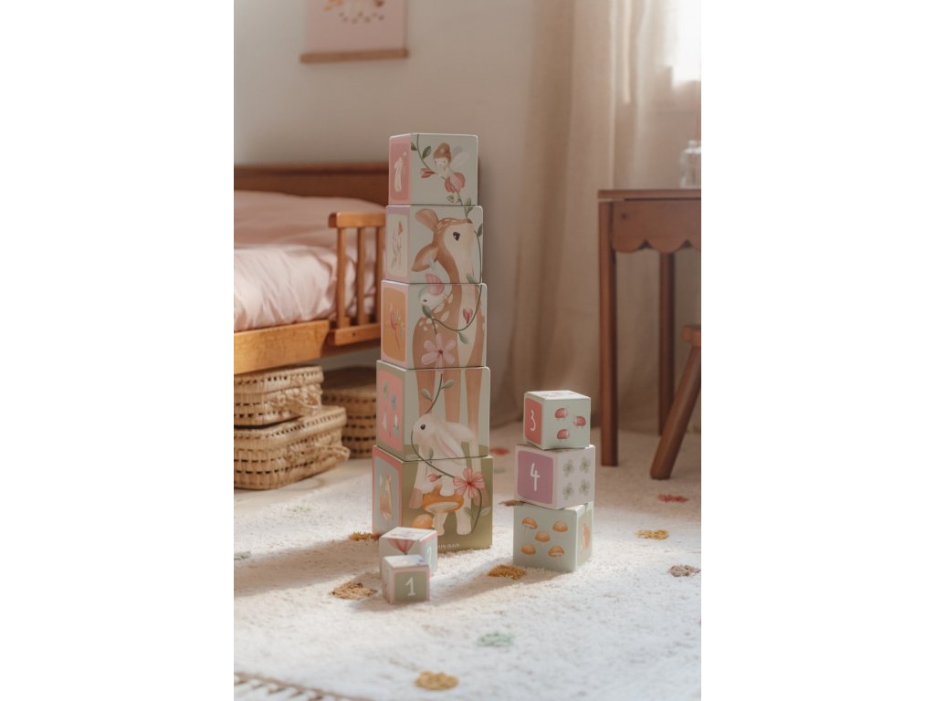 Barevné kartonové kostky s krásnými ilustracemi motivů ze života na zahradě. Nechte vaše dítě kostky skládat na sebe do vysoké věže nebo vedle sebe podle velikosti. Ve starším věku se dítě s pomocí očíslovaných kostek může hravým způsobem učit počítat i rozpoznávat číslice.