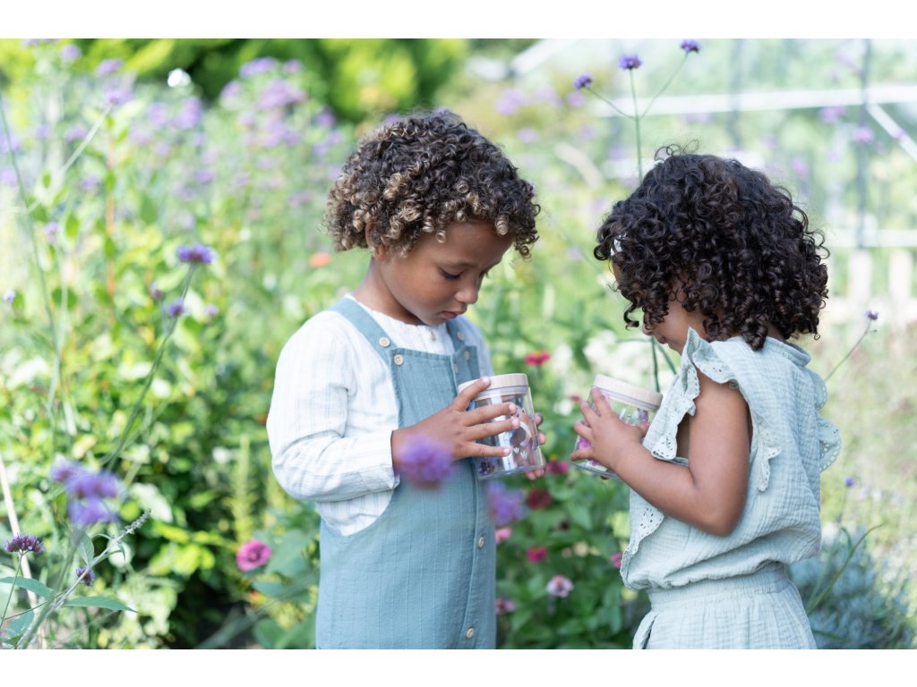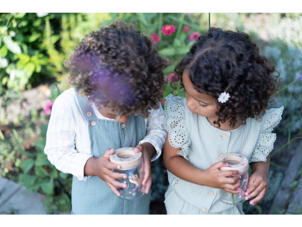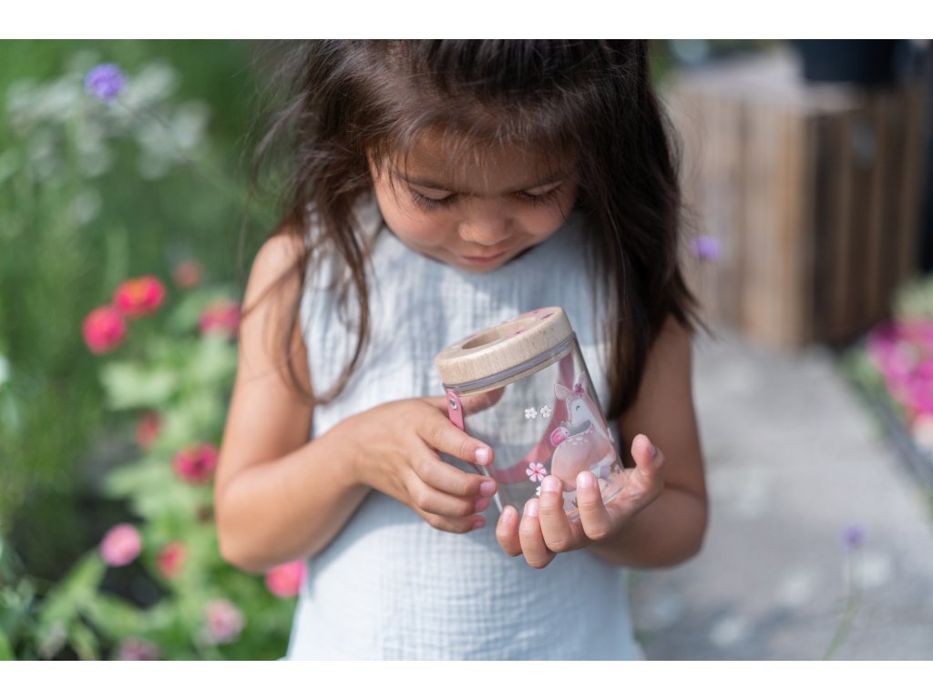 Nádoba na hmyz s krásným potiskem umožní vašemu dítěti bezpečným způsobem pozorovat hmyz, který žije na zahradě či v lese. Nádobka z průhledného plastu má dřevěné víčko s lupou pro zkoumání i těch nejmenších detailů. Větrací otvory zajišťují větrání v nádobce. Díky držadlu se nádobka snadno přenáší.