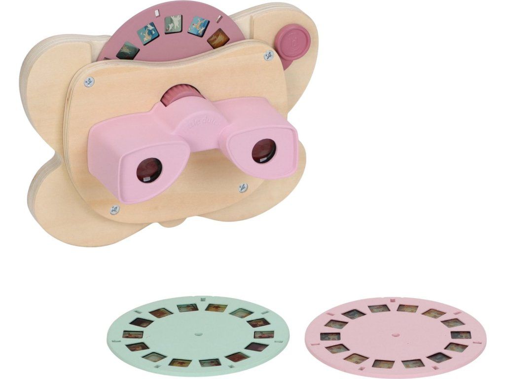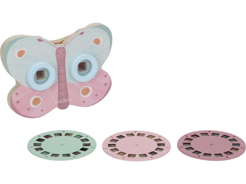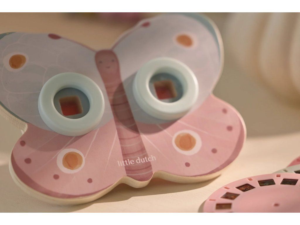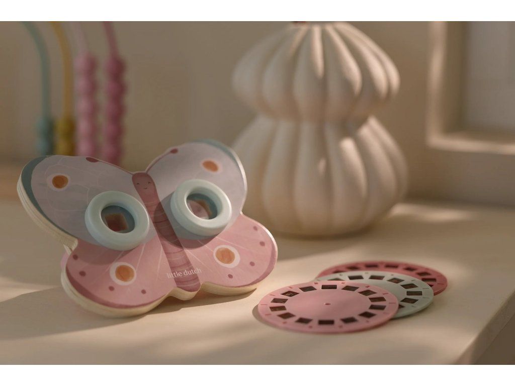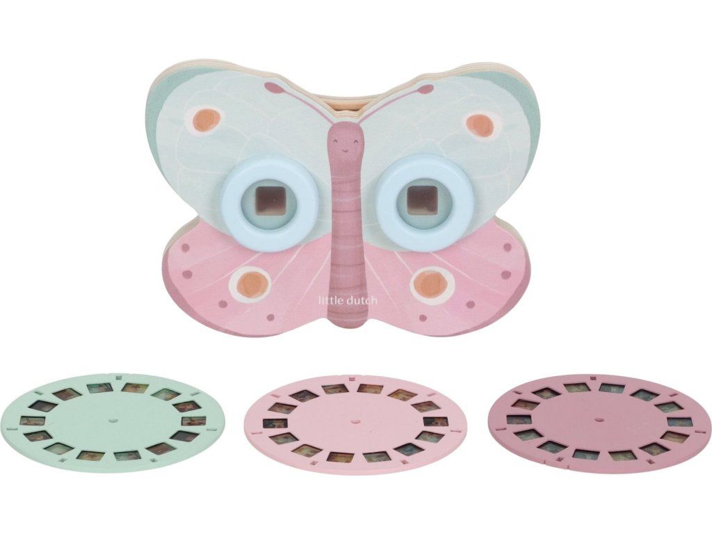 Prohlížeč příběhů Little Dutch je kouzelná hračka, která děti vtáhne do světa vyprávění a fantazie. Má podobu něžného motýla a funguje jednoduše: stačí otáčet kotoučky a před očima se odvíjejí obrázkové příběhy z lesa. Součástí jsou tři výměnné kotouče s příběhy ze života na zahradě. Ideální pro klidné chvíle před spaním i společné vyprávění s rodiči. Hračka podporuje rozvoj řeči, představivost a schopnost tvořit vlastní příběhy.