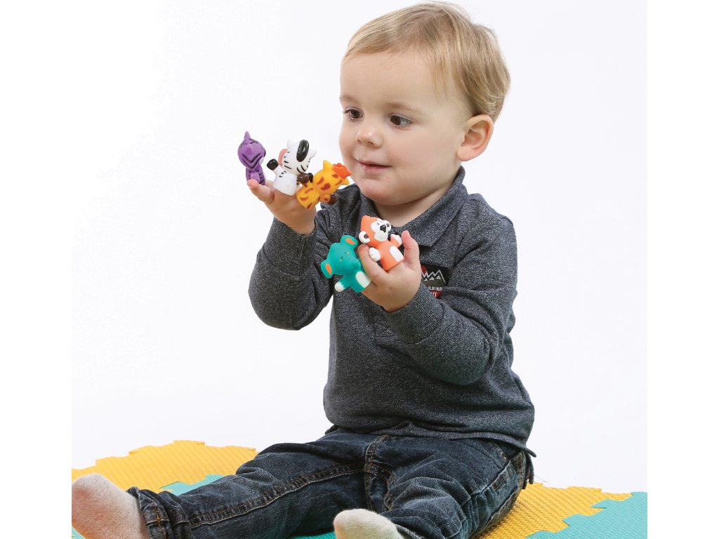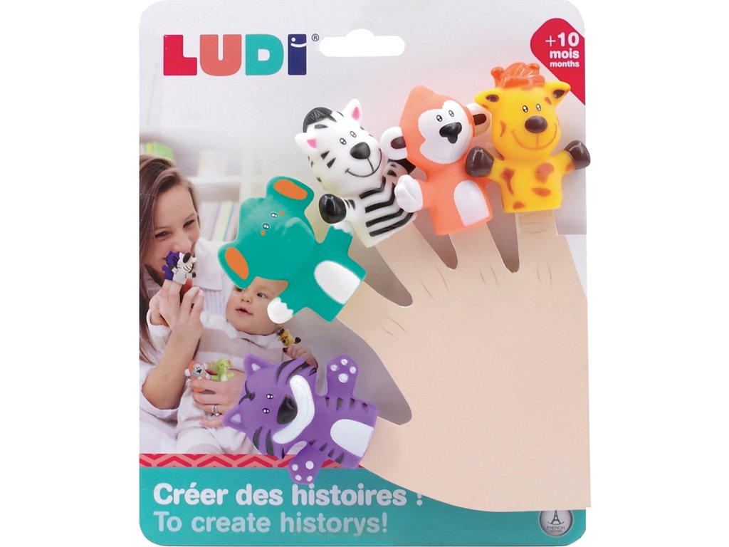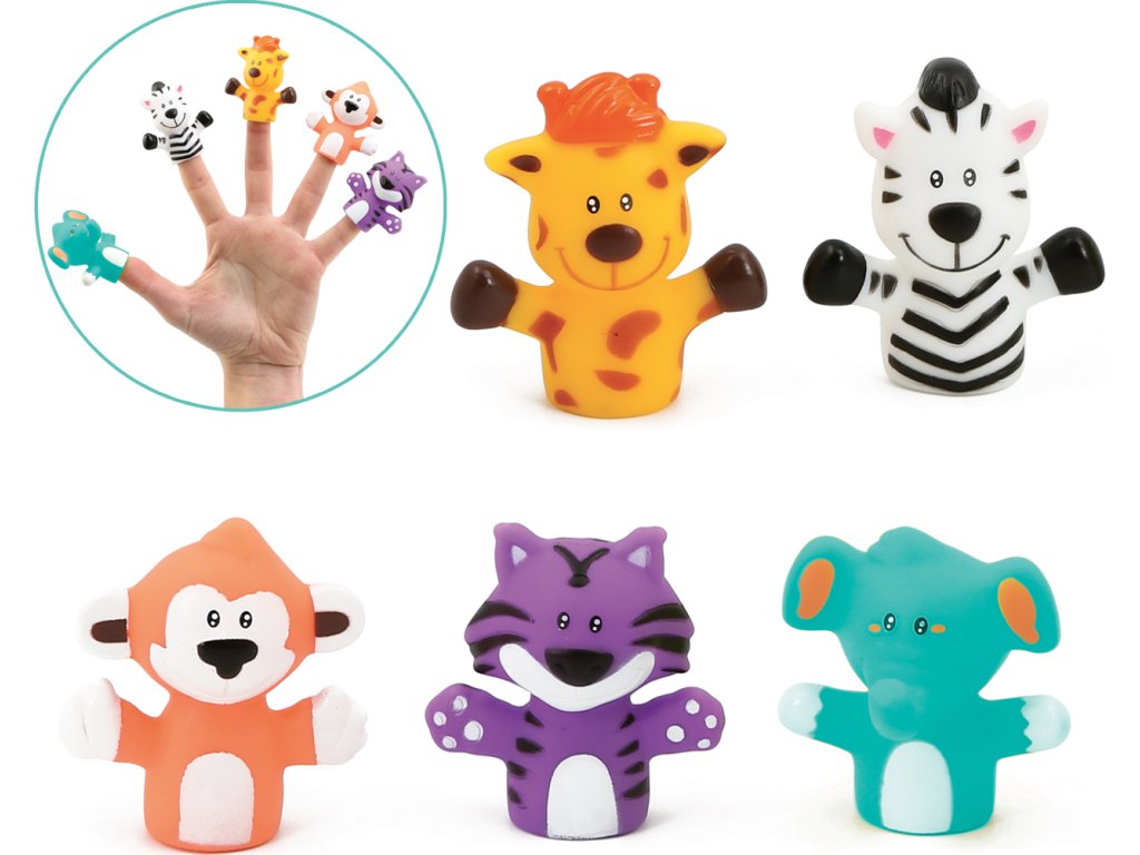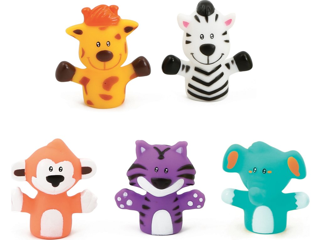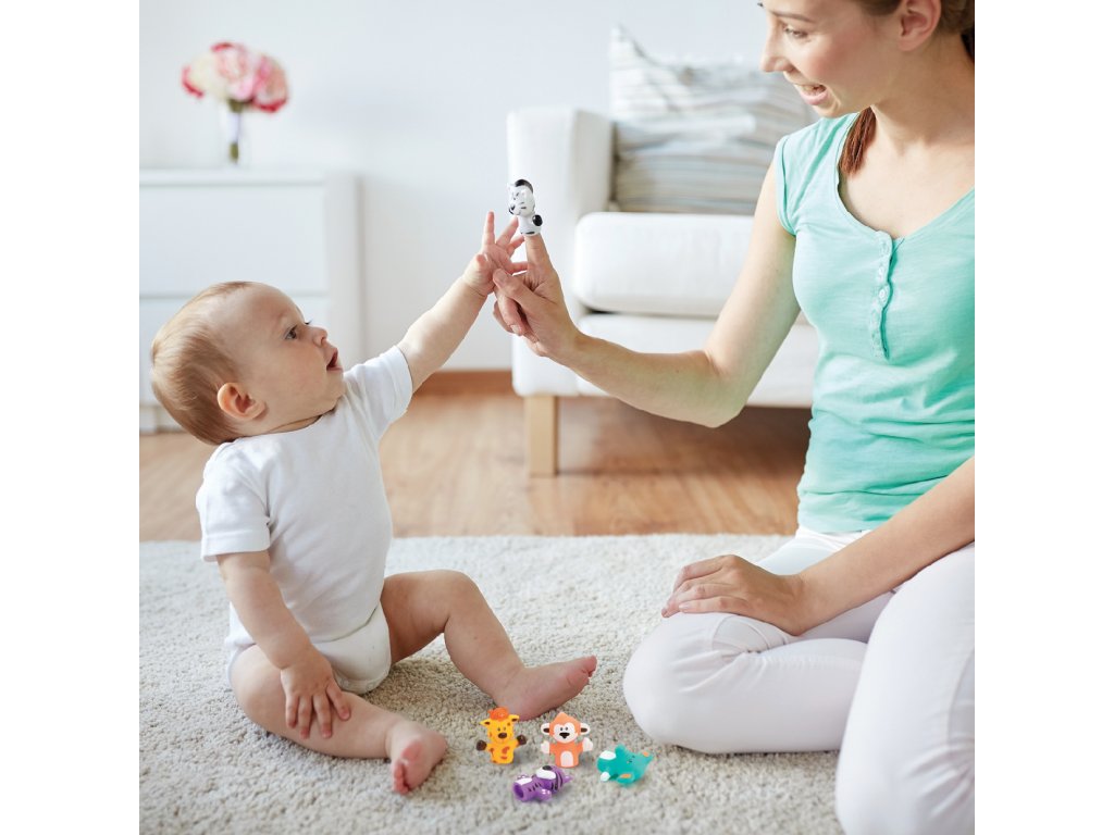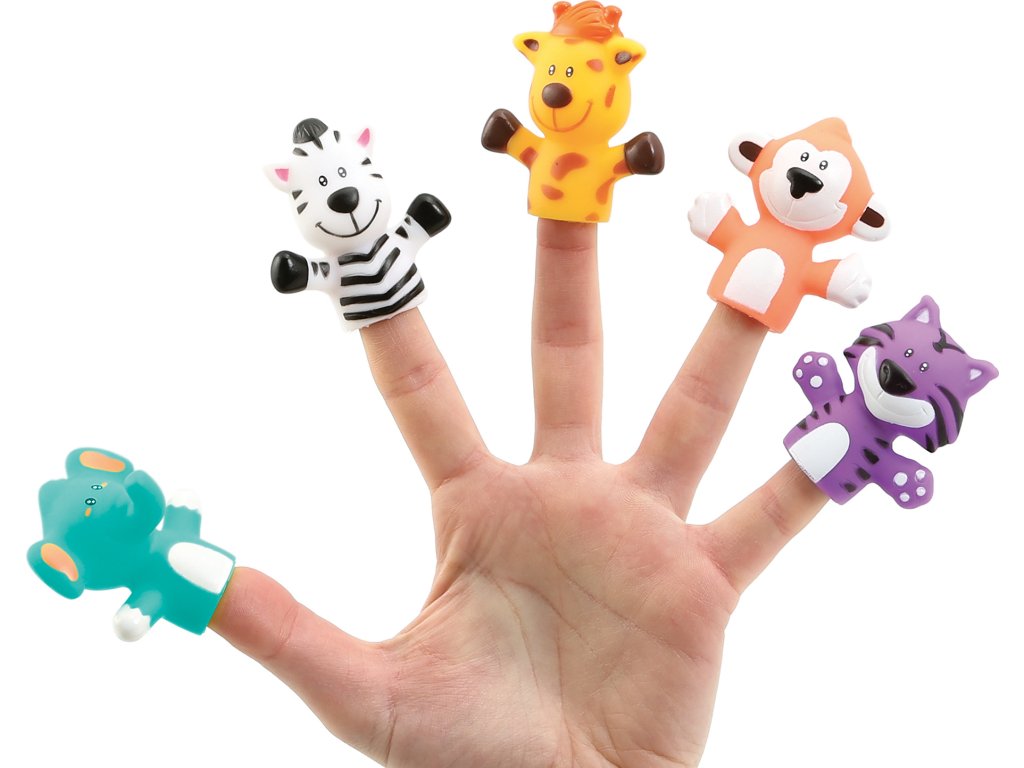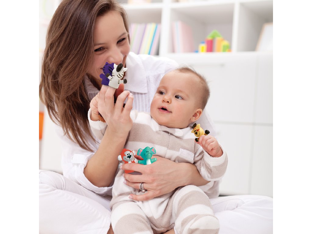 Sada originálních prstových maňásků nabízí skvělý způsob, jak si užít vyjímečné chvíle s vaším dítětem, jako je čas koupání nebo povídání před spaním. Vymýšlejte si spolu příběhy o pěti zvířecích kamarádech a rozvíjejte tak zábavným způsobem představivost a slovní zásobu dítěte. Nejdříve se naučí poznávat barvy a jména zvířat, ve starším věku už si maňásky nasadí na vlastní prsty a bude vymýšlet vlastní příběhy.