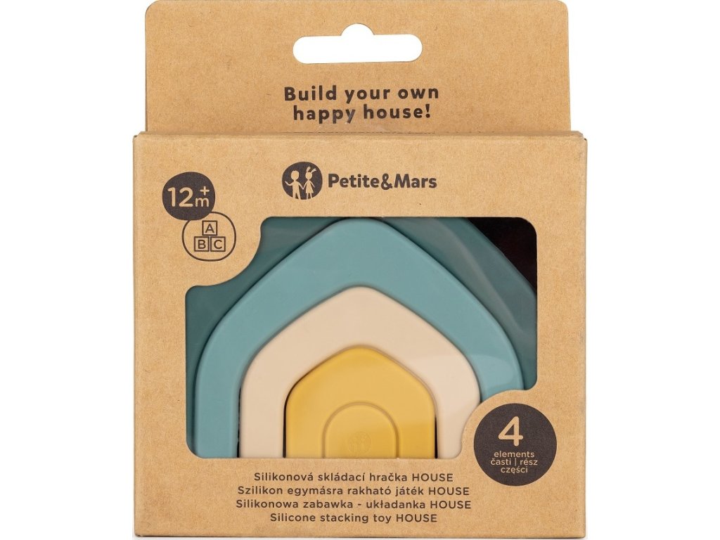 Silikonová skládací hračka HOUSE se skládá ze čtyř obloukových prvků, které po umístění jeden na druhý vytvoří pěkný domeček. Tento domeček je kouzelnou branou do světa tvarů, barev a poznávání. Skládání oblouků, jejich otáčení nebo ukládání jednoho oblouku na druhý je výborným cvičením pro malé ručičky. Dítě si procvičuje přesnost pohybů a koordinaci. Skládačka vzbuzuje zájem dítěte, příjemným a poutavým způsobem soustřeďuje jeho pozornost a učí jej tvořivému myšlení. Uspořádání neukládá konkrétní pravidla, čímž se podporuje kreativita. Dítě se přitom skvěle baví, může vytvářet vlastní verze skládačky, rozvíjet si konstrukční dovednosti a procvičovat svoji prostorovou představivost.