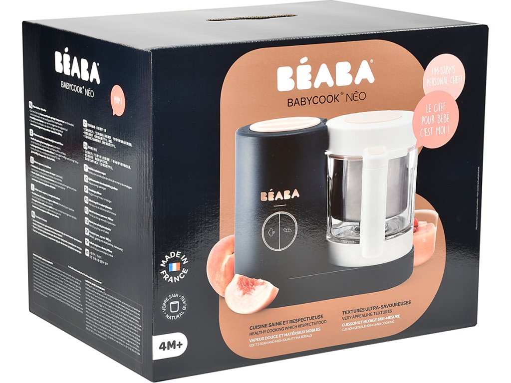 Zcela nový model Babycook® NEO má skleněnou nádobu s objemem 1250 ml a nerezový vkládací košík s objemem 1000 ml. Nerezový zásobník na vodu s vnitřní ryskou a se širokým vstupním otvorem usnadňuje plnění vodou i čištění zásobníku.