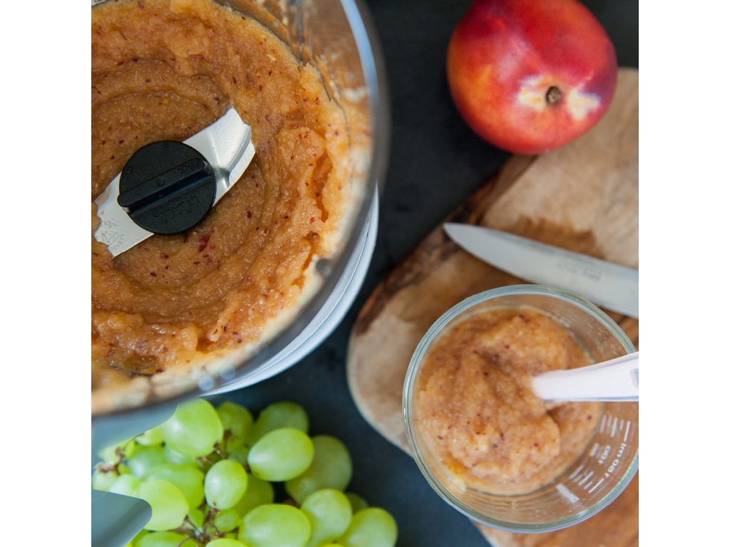 Chcete-li následně pokrm rozmixovat, pouze vysypete uvařené suroviny z vkládacího košíku do průhledné hlavní nádoby a rozmixujete (podle věku dítěte na jemnou hladkou kaši, nebo na hrubší strukturu s kousky). Když se dítě naučí dobře kousat, dá se Babycook® dále používat pro zdravé vaření v páře i bez mixování.