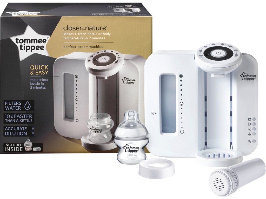 Přístroj na přípravu kojeneckého mléka Tommee Tippee Perfect PrepTM vám umožní během dvou minut připravit lahvičku s umělým mlékem v optimální teplotě pro podání dítěti. Zabudovaný vodní filtr odstraní z vody jakékoli nečistoty.