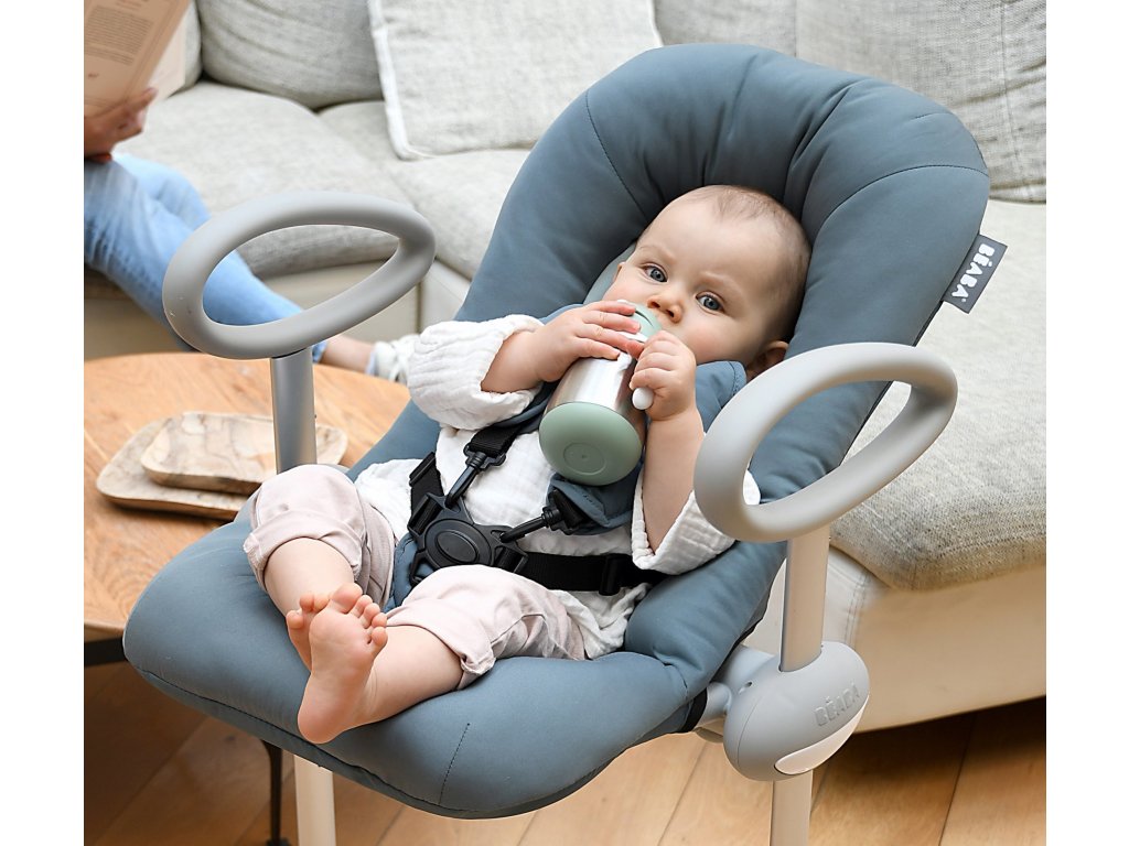 Zaklapávací silikonové brčko s víčkem je zárukou bezpečného přenášení v tašce. Ventil v brčku navíc brání vylití obsahu lahvičky při převržení i když víčko není zaklapnuté. Držadla usnadňují dítěti držení hrnku.