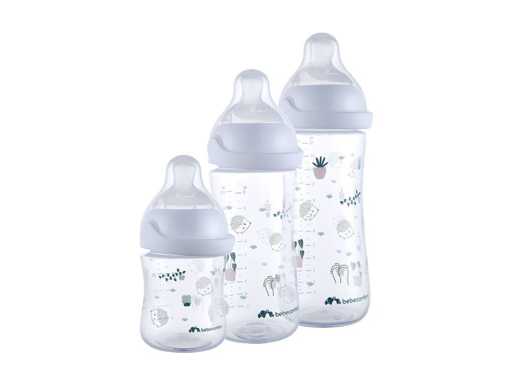 Kojenecká lahvička Bebeconfort Emotion Physio s unikátní silikonovou savičkou fyziologického tvaru je zárukou, že dítě téměř nepociťuje rozdíl mezi kojením a krmením z lahvičky. Lahvička je antikoliková, opatřená dvojitým ventilačním systémem na okraji savičky, který citlivě zabezpečí únik vzduchu z láhve, tím umožní plynulé sání tekutiny a zároveň snižuje riziko břišní koliky.