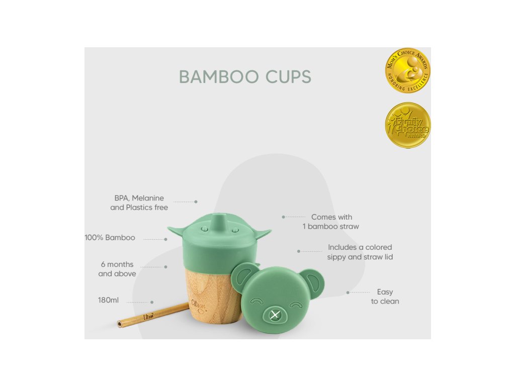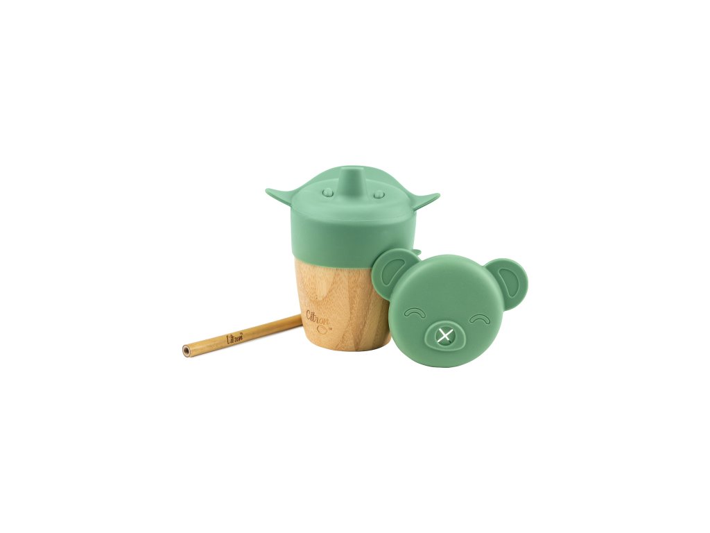 Citron Bambusový hrneček s pítkem a brčkem - Green