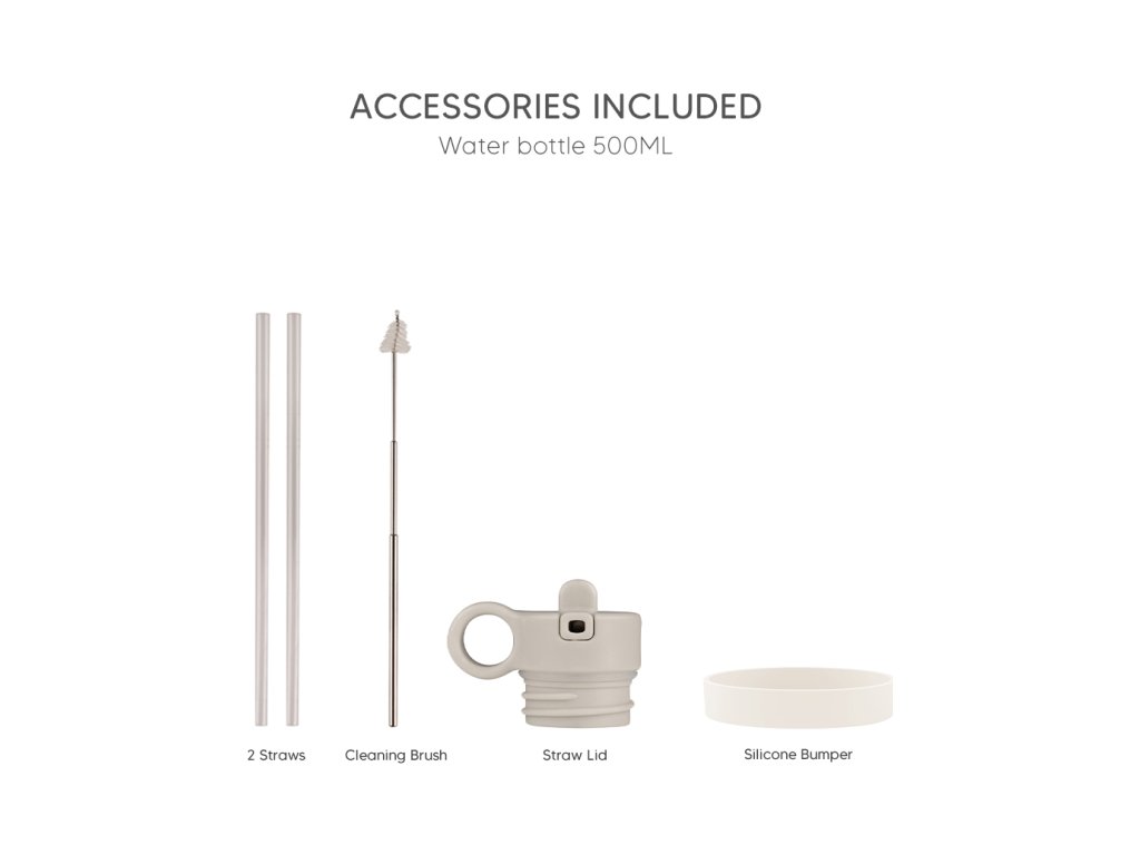 - Včetně uzávěru s pítkem, 2 brček, 1 kartáčku k čištění brčka a 1 protiskluzovým silikonovým dnem na lahev pro ochranu desky stolu