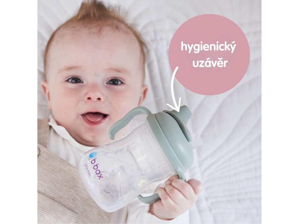 Hrneček od oblíbené australské značky b.box má ergonomicky tvarovanou savičku vyrobenou ze silikonu, která je jemná k dětským dásním. Na víčku hrnečku je připevněný kryt na savičku, takže jej nikdy neztratíte a ochrání savičku před nečistotami. Jednoduché ergonomické úchyty na hrnečku a snadné odklopení víčka podporují samostatnost vašeho dítěte.