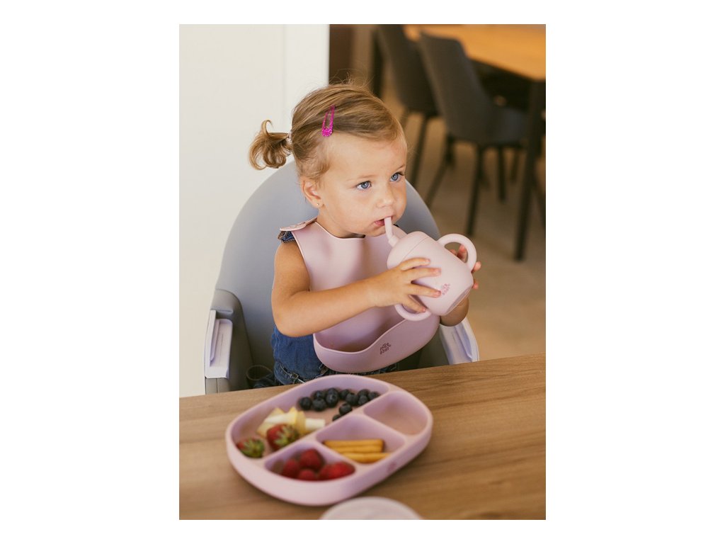 Díky svému designu pomáhá miminku udret hrníek v dlaních a se systém proti rozlití, co z nj dlá skvlého pomocníka pi krmení. Lze sejmout brko s víkem a pouívat jako normální hrníek. Vyrobeno z vysoce kvalitního potravináského silikonu, který pomáhá sníit výskyt bakterií a plísní.