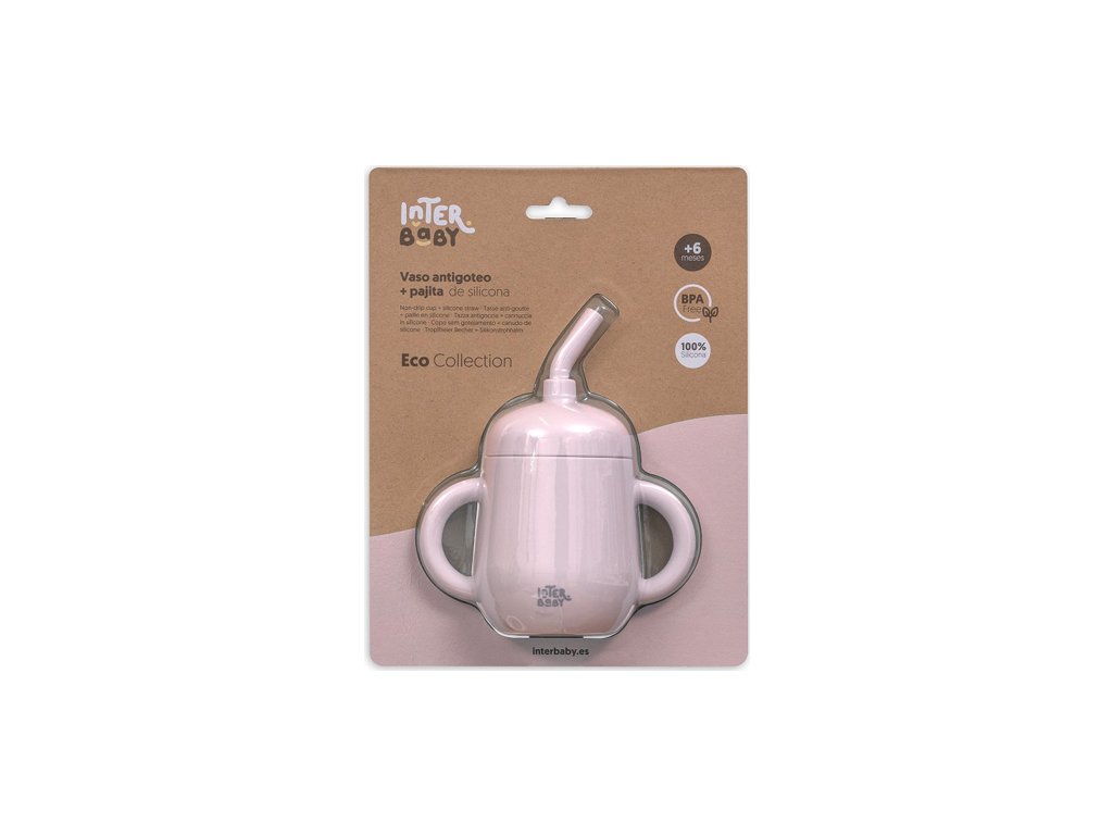 INTERBABY | Lahvička s brčkem SILIKONOVÁ - růžová