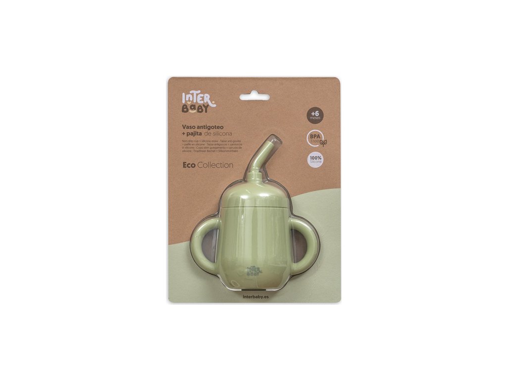 INTERBABY | Lahvička s brčkem SILIKONOVÁ - zelená