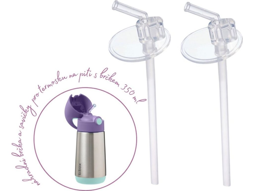 Balení obsahuje 2ks náhradní savičky včetně brček, které jsou určené pro termosku na pití s brčkem o objemu 350 ml od značky b.box.