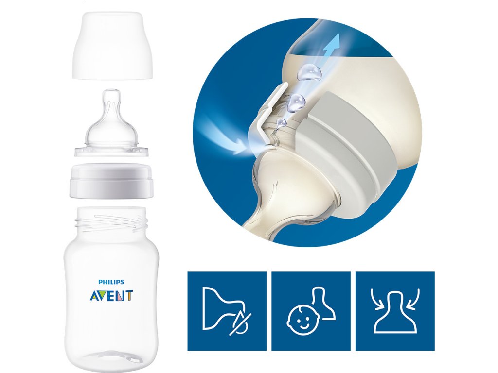 - antikolikový ventil je navržený tak, aby omezoval polykání vzduchu
