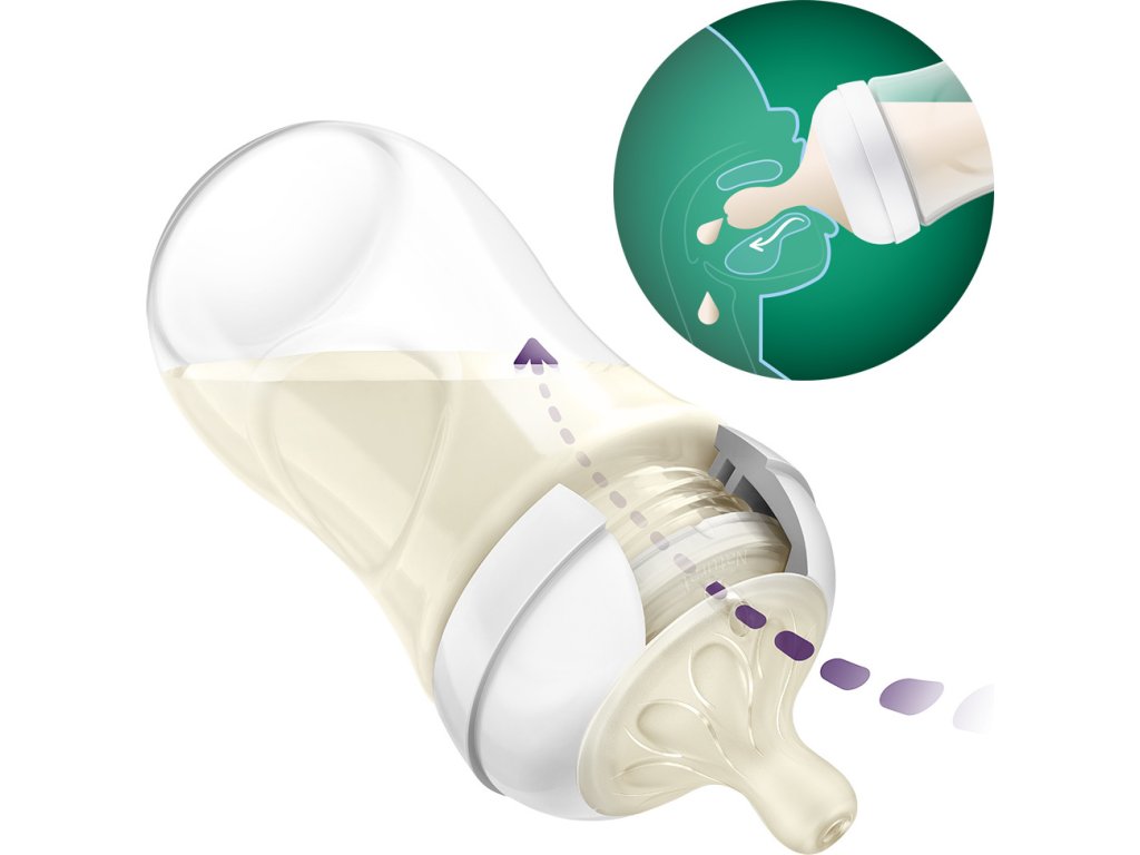 Dudlík Natural Response funguje v souladu s přirozeným rytmem krmení dítěte, takže lze snadno kombinovat kojení a krmení z lahve. Má unikátní otvor, který uvolňuje mléko pouze tehdy, když dítě aktivně pije. Když tedy dítě pití přeruší, aby polklo a nadechlo se, tok mléka se přeruší také.