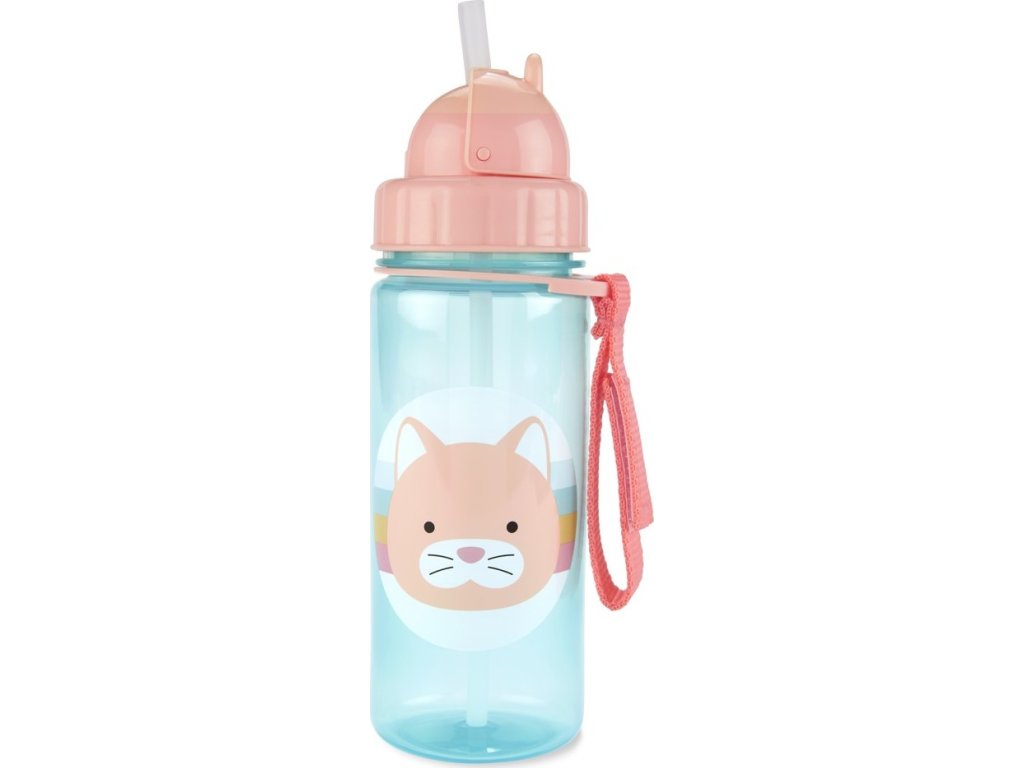 Krásná a praktická lahvička z kolekce ZOO, s brčkem, zavíracím víčkem, praktickým páskem na suchý zip.